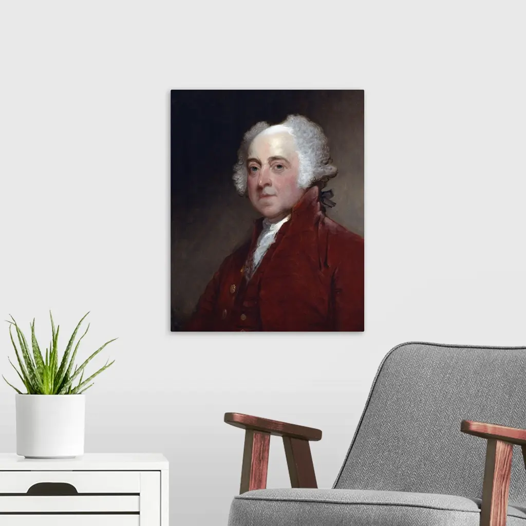 John Adams, by Gilbert Stuart, c. 1800-15, American painting, oil on canvas. Painted when the second president was in his eighties, Stuart copied it from a preliminary portrait made of Adams during his presidency