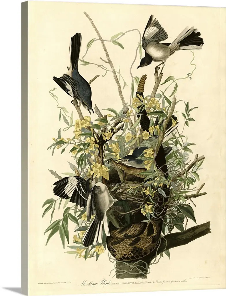 John James Audobon 'Mocking Birds And Snake Ii' Canvas Art, 24x16