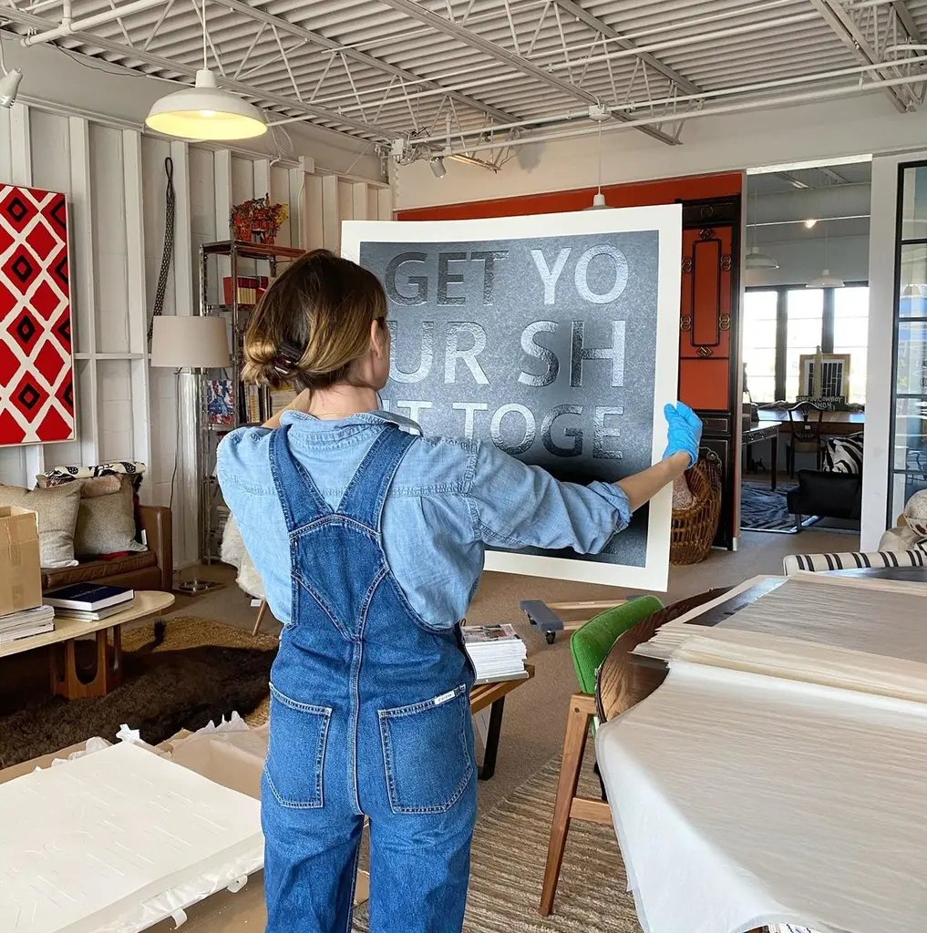 John O'Hara's famous 'Get Your Shit Together' painting is now a 2-color embossed serigraph on recycled archival hemp paper. Hand signed by the artist.This work is unframed.Forsyth is proud to be the exclusive gallery of John O'Hara (American, b. 1963). O'Hara is a self-taught artist from St. Louis and is known for his large-scale abstract decorative pieces. His medium of choice is encaustic-a mixture of pigments and beeswax and he allows the material to dictate color, line and texture. His works often feature natural and organic forms and incorporate both figural and abstract elements. O'Hara began his art career in 2018 and collectors and designers quickly took notice. His work is included in both public and private collections around the world. Michael Kors selected O'Hara's Tar series paintings for his Milan, Paris, and New York showrooms and his flagship store in London. O'Hara's Brands on Yellow is hanging in the lounge of New Orleans luxury boutique hotel, Maison de la Luz. O'Hara, co-founder of Forsyth, is known for his Tar series, Brands series, Vinyl series, Botanical series, Daisies series, Sardinia series, and Get Your Shit Together series.