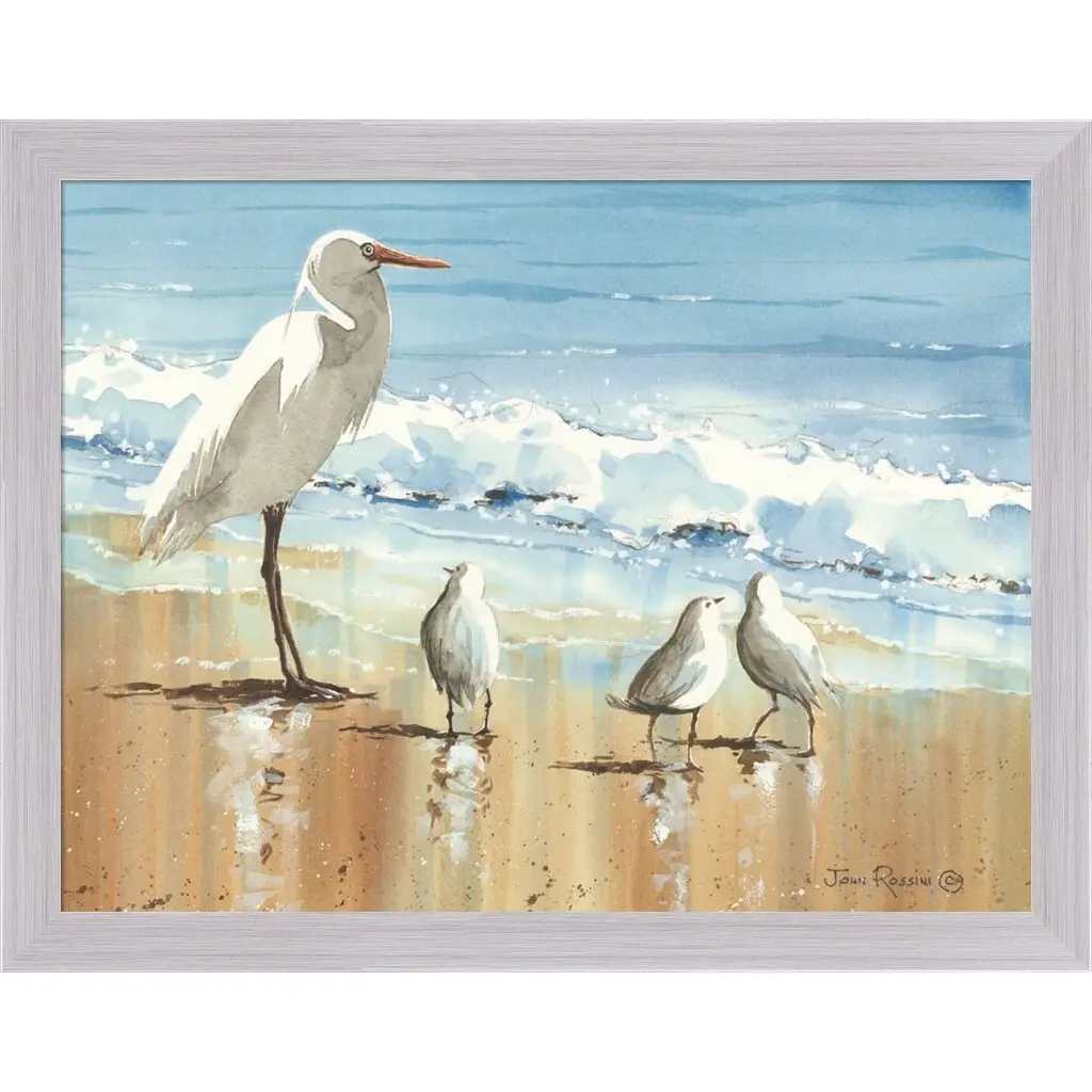 His Entourage by John Rossini is a high quality piece of framed artwork. The finished size of this piece is 29.25" X 23". It has a White Washed Light Marble Gray frame and is finished with high quality Acrylic Plexiglass. 100% Satisfaction Guaranteed.