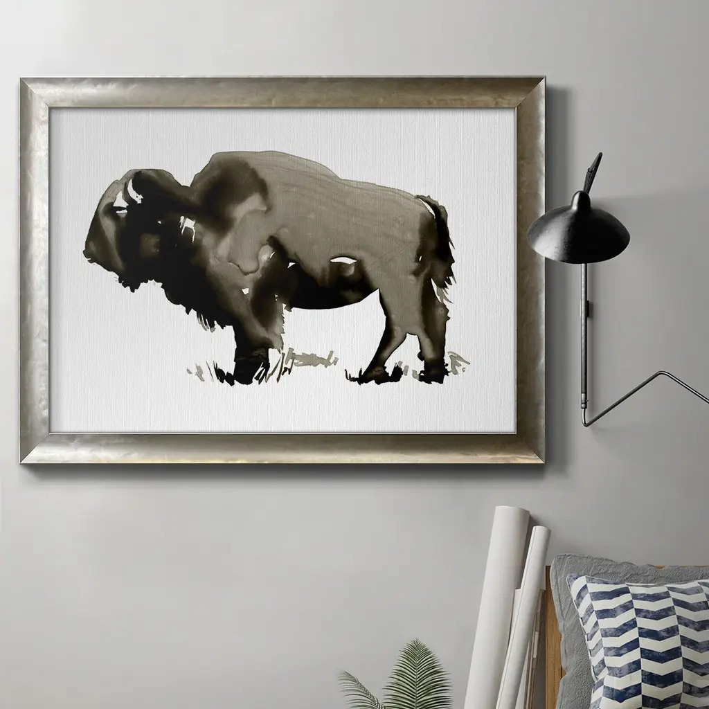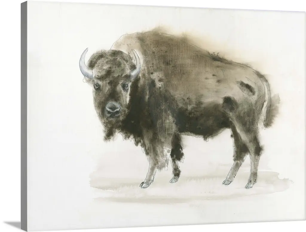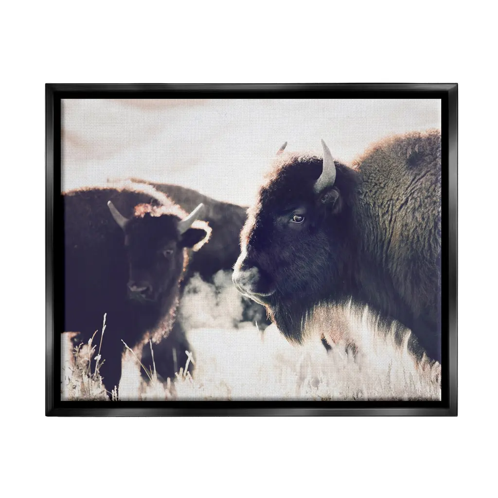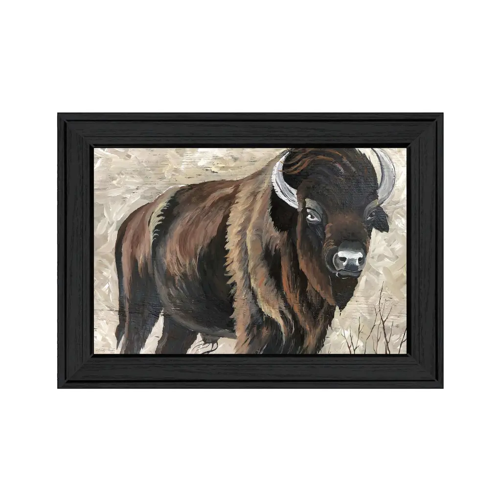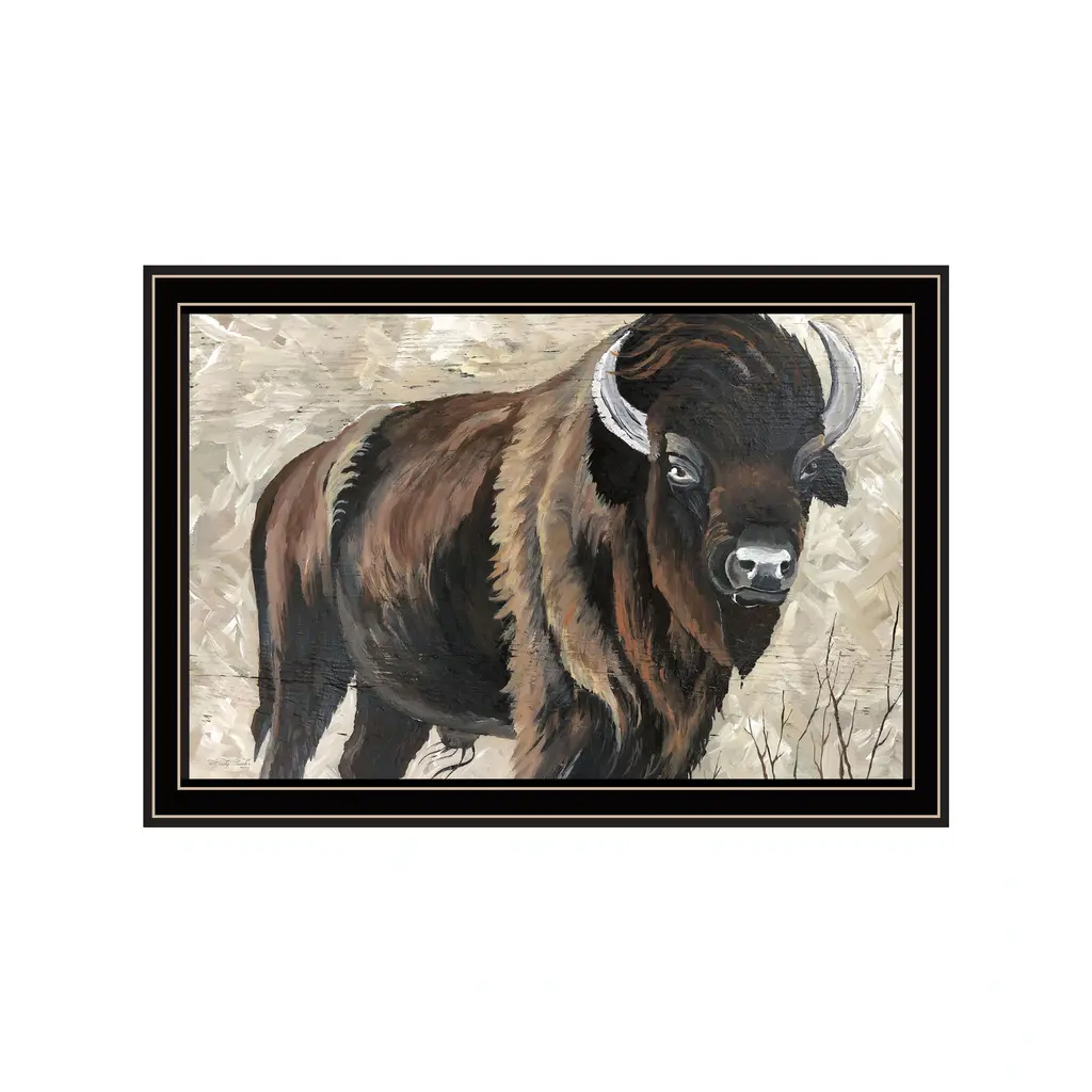 This high-contrast buffalo study from Joseph Knowles Jr. is printed on archival watercolor paper and displayed in a simple walnut wood frame. Arrives ready to hang.