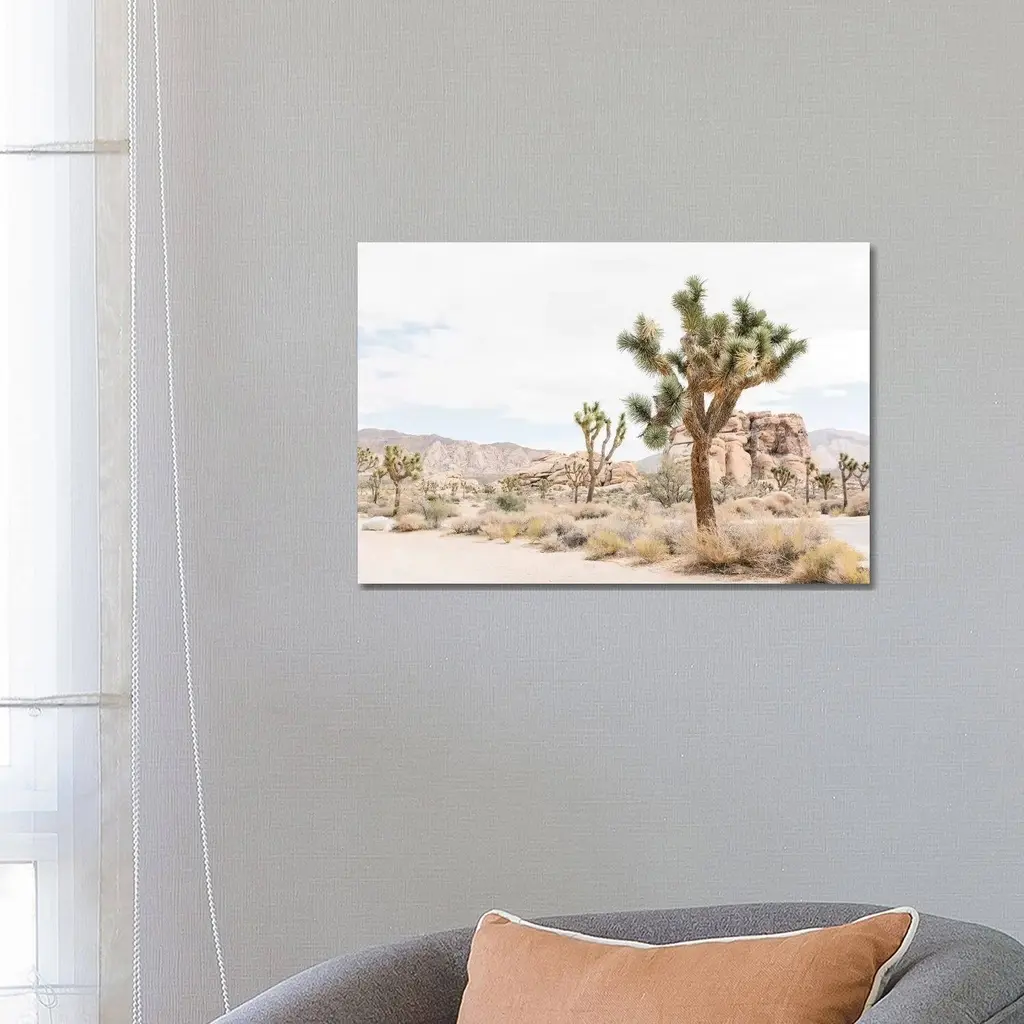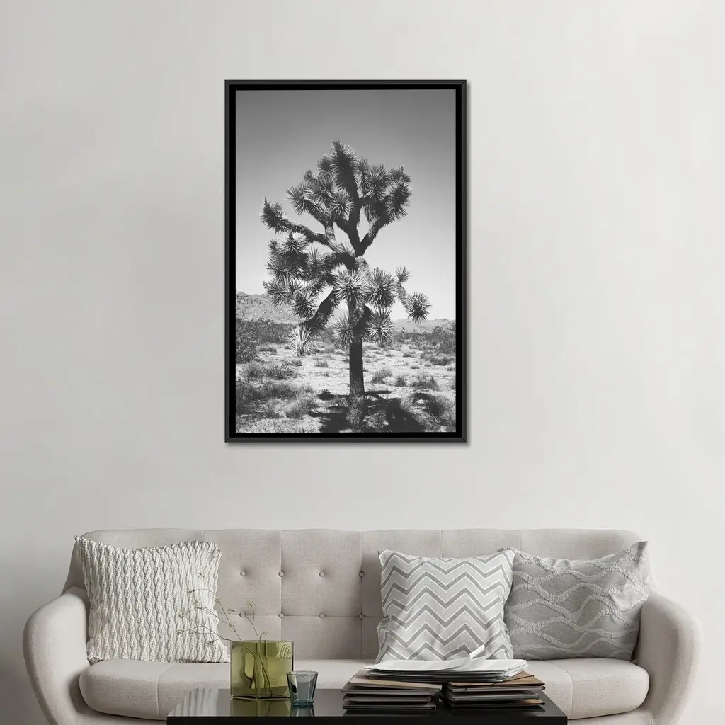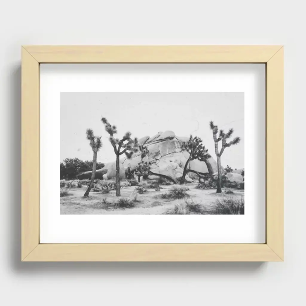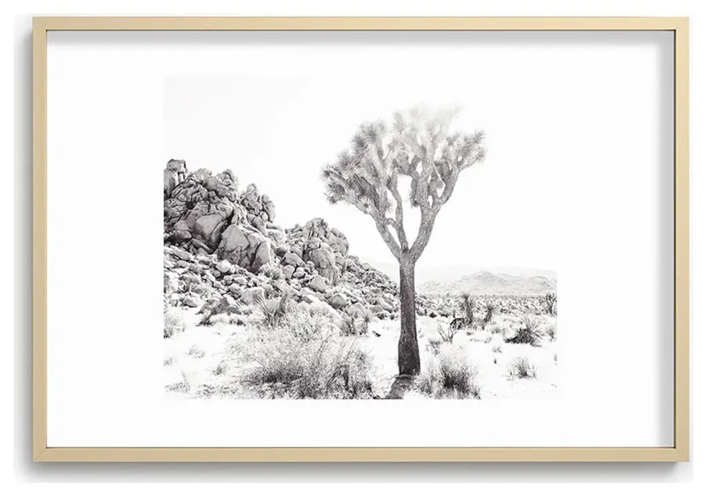 Struck by the otherworldly feel of Joshua Tree National Park, artist Tatiana Alexandra captured the unique landscape of that desert in this fascinating photo. The grayscale printing emphasizes the alien beauty of both the spiky plant life and undulating rock formations. "Joshua Tree" is presented in a light wood frame that contrasts warmly with the black-and-white print.