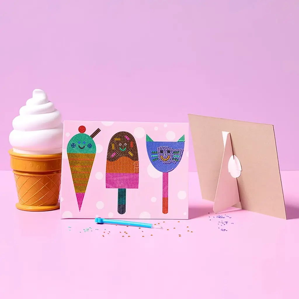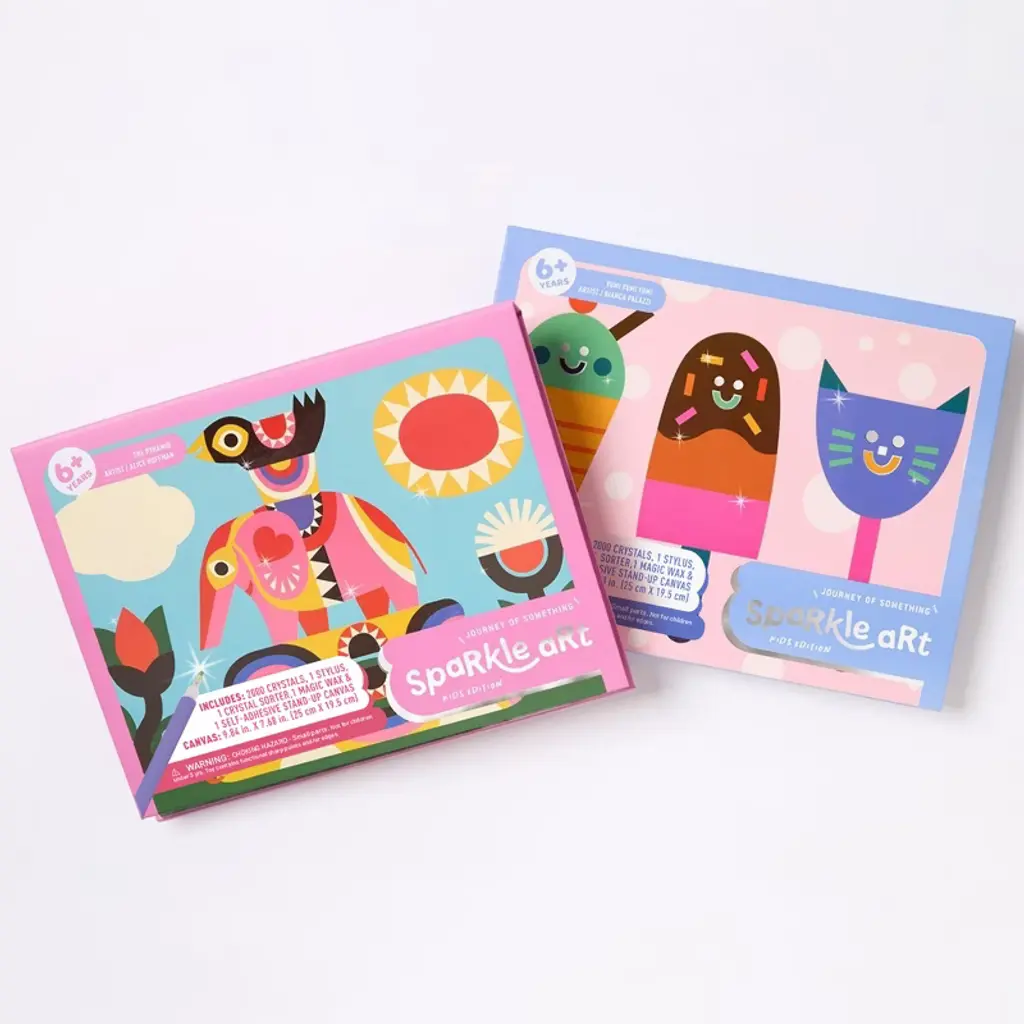 JOURNEY OF SOMETHING - SPARKLE ART: YUM! YUM! YUM! – Add a sprinkle of sparkle to craft time with the Yum! Yum! Yum! Sparkle Art Kit! Featuring over 2,000 dazzling crystals, this kit lets young artists bedazzle an adorable ice cream-themed artwork using a self-adhesive canvas and precision stylus. Designed for ages 6 and up, this engaging craft set enhances fine motor skills, patience, and creativity while providing hours of hands-on fun. WHAT’S INCLUDED: 1 Self-Adhesive Canvas with Stand (9.8 x 7.7 inches) - Mess-free and easy to use. 2,000 Sparkly Crystals - Bright and colorful for a dazzling effect. 1 Stylus - Designed for easy application. 1 Magic Wax - Helps secure each crystal in place. WHY YOU’LL LOVE IT: Fun and Relaxing Craft Activity - Encourages creativity and focus. Perfect for Kids and Adults - Great for ages 6 and up and for craft lovers. Beautiful Display Piece - Includes a stand to showcase your artwork. Mess-Free and Easy to Use - Self-adhesive canvas simplifies the crafting process.