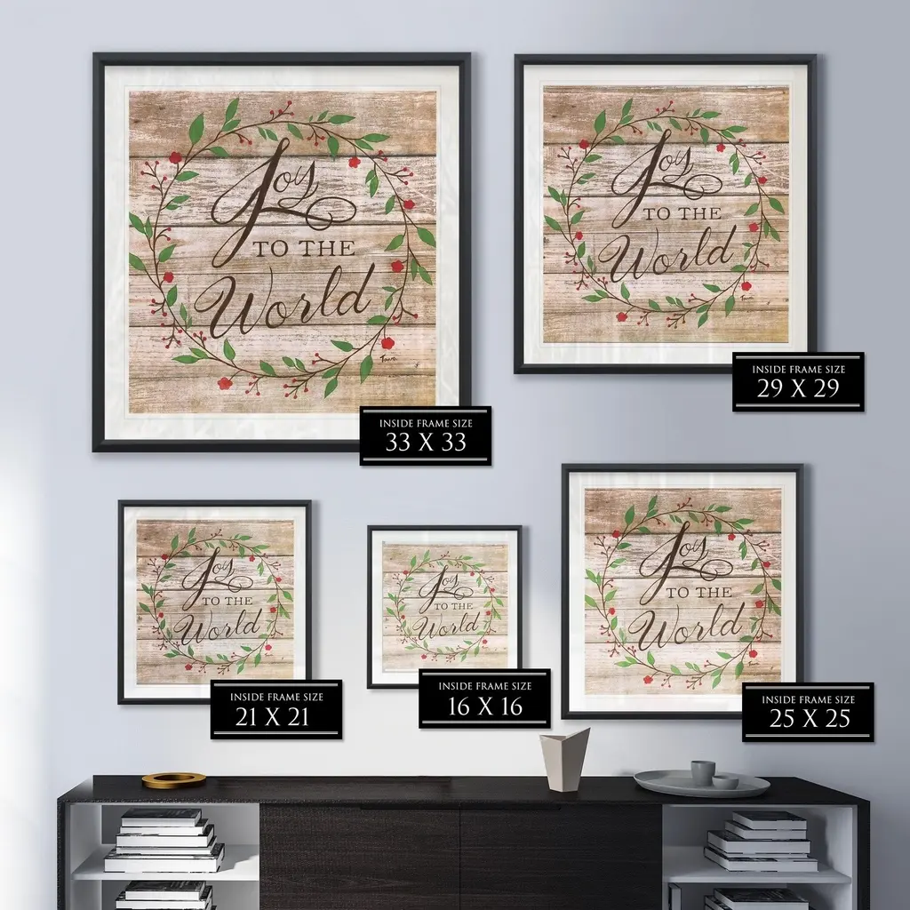 Joy To The World -Framed Giclee Print A premium framed giclee print Printed using the last archival inks. Each print is carefully printed and framed by hand. Each piece features a 2'' Beveled matt board, acrylic glass and comes ready to hand. 5 SIZES AVILABLE 16''x16''- Overall Size 24''x22''- Overall Size 28''x28''' - Overall Size 32''x32''' - Overall Size 38''x38'' - Overall Size ** Overall size may vary slightly from piece to piece Each piece is made to order. Built to Last Each piece comes ready to hang Archival Ink 2'' Matt Board Assembled by hand in the America