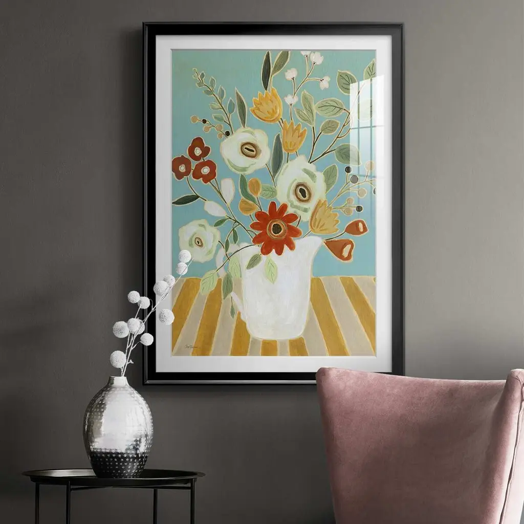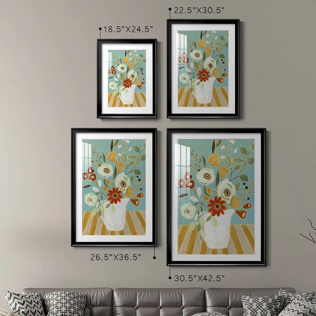 Joyful Blossoms I Premium Framed Print - Ready to Hang A Premium Framed Print created to last. Framed in distressed wood and available in an array of sizes and colors Featuring a beveled a solid wood stretcher bar, each piece comes ready to hand 4 SIZES AVAILABLE 30.5''X42.5'' - Overall Size 26.5'X36.5'' - Overall Size 22.5''x30.5'' - Overall Size 18.5''x24.5'' - Overall Size Each piece is made to order. Each piece comes with hanging hardware. Made in the USA Ready to Hang Giclee Paper Print Acrylic Glass Beveled Matt Board
