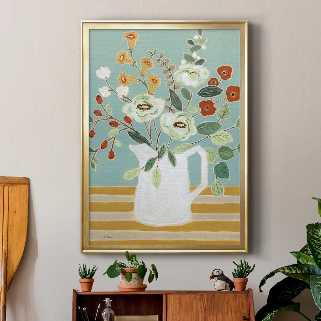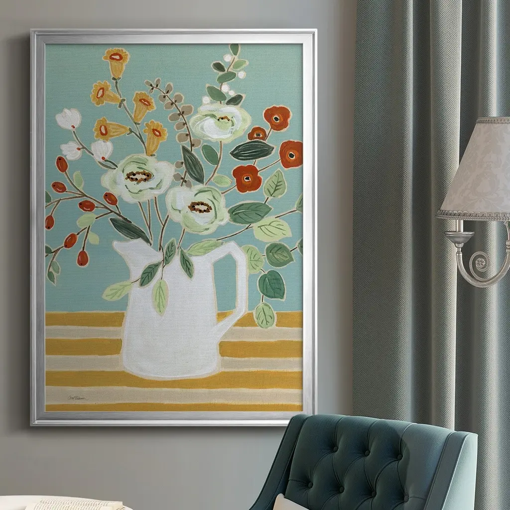 Joyful Blossoms II Premium Framed Print - Ready to Hang A Premium Framed Print created to last. Framed in distressed wood and available in an array of sizes and colors Featuring a beveled a solid wood stretcher bar, each piece comes ready to hand 4 SIZES AVAILABLE 30.5''X42.5'' - Overall Size 26.5'X36.5'' - Overall Size 22.5''x30.5'' - Overall Size 18.5''x24.5'' - Overall Size Each piece is made to order. Each piece comes with hanging hardware. Made in the USA Ready to Hang
