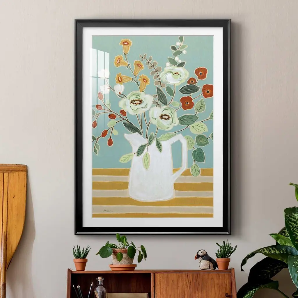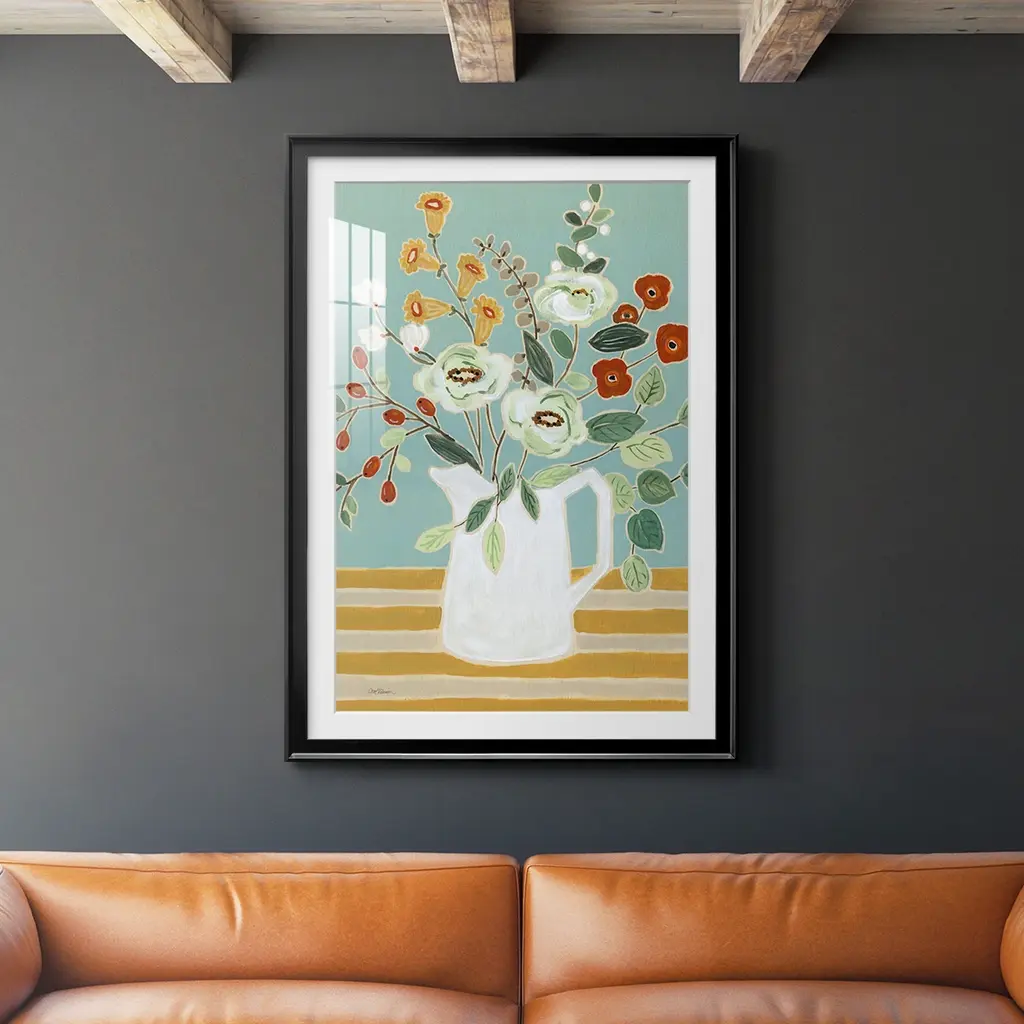 Joyful Blossoms II Premium Framed Print - Ready to Hang A Premium Framed Print created to last. Framed in distressed wood and available in an array of sizes and colors Featuring a beveled a solid wood stretcher bar, each piece comes ready to hand 4 SIZES AVAILABLE 30.5''X42.5'' - Overall Size 26.5'X36.5'' - Overall Size 22.5''x30.5'' - Overall Size 18.5''x24.5'' - Overall Size Each piece is made to order. Each piece comes with hanging hardware. Made in the USA Ready to Hang Giclee Paper Print Acrylic Glass Beveled Matt Board