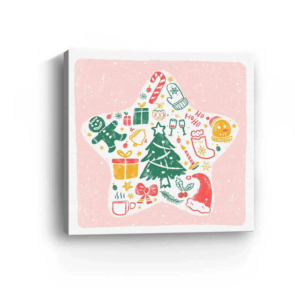 Transform your space into a winter wonderland with this holiday-inspired canvas print. Featuring classic Christmas motifs and cheerful hues, it's the perfect accent for seasonal gatherings and cozy nights in. Our Gallery Wrap Canvas Prints are proudly assembled with high quality materials in California, USA. Each piece is printed on a thick, archival grade canvas using Giclee technology. It is then hand-stretched by our experienced artisans over solid wood bars, which will not warp over time. The final product is a piece personally crafted for you to confidently display on your wall. Care and Assembly: Ensure that the location of your piece has little to no exposure to heat, sunlight, and moisture. Wipe clean, only if needed. Each piece includes hanging hardware to hang on your wall horizontally.