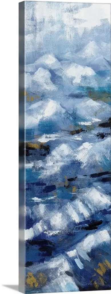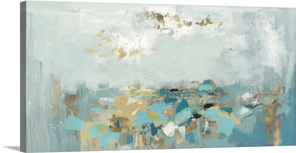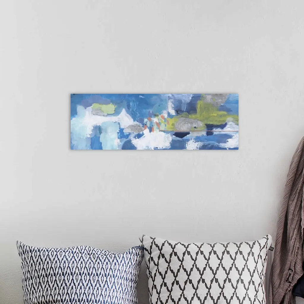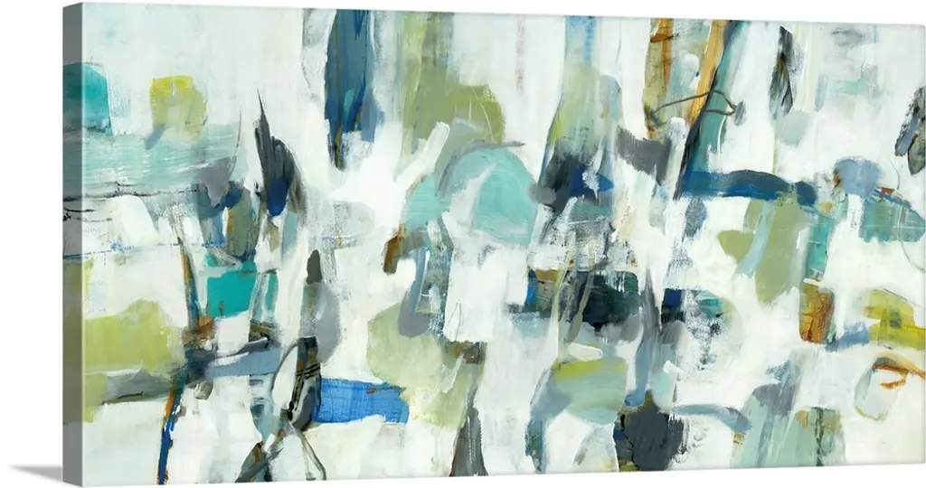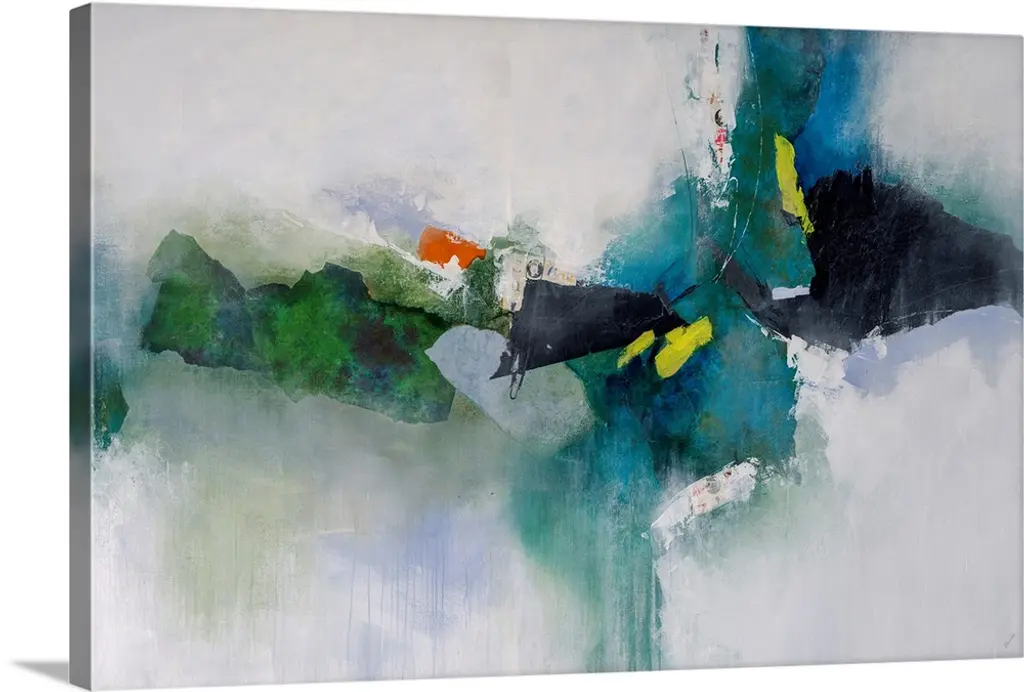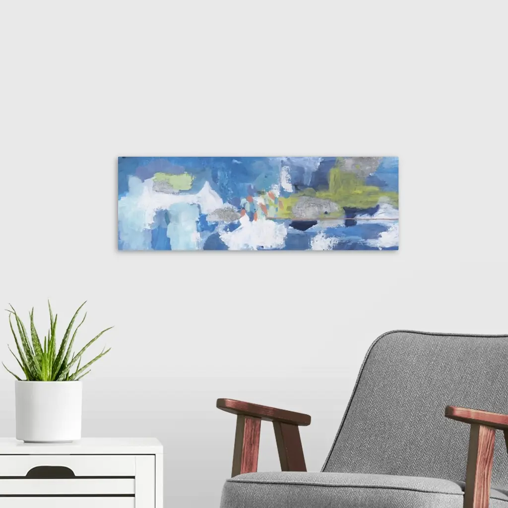 Contemporary abstract painting using tones of blue and green.