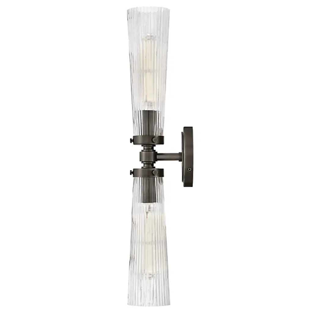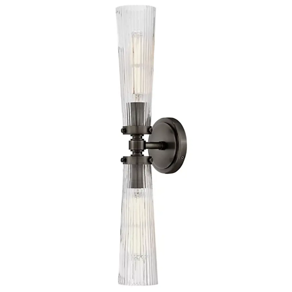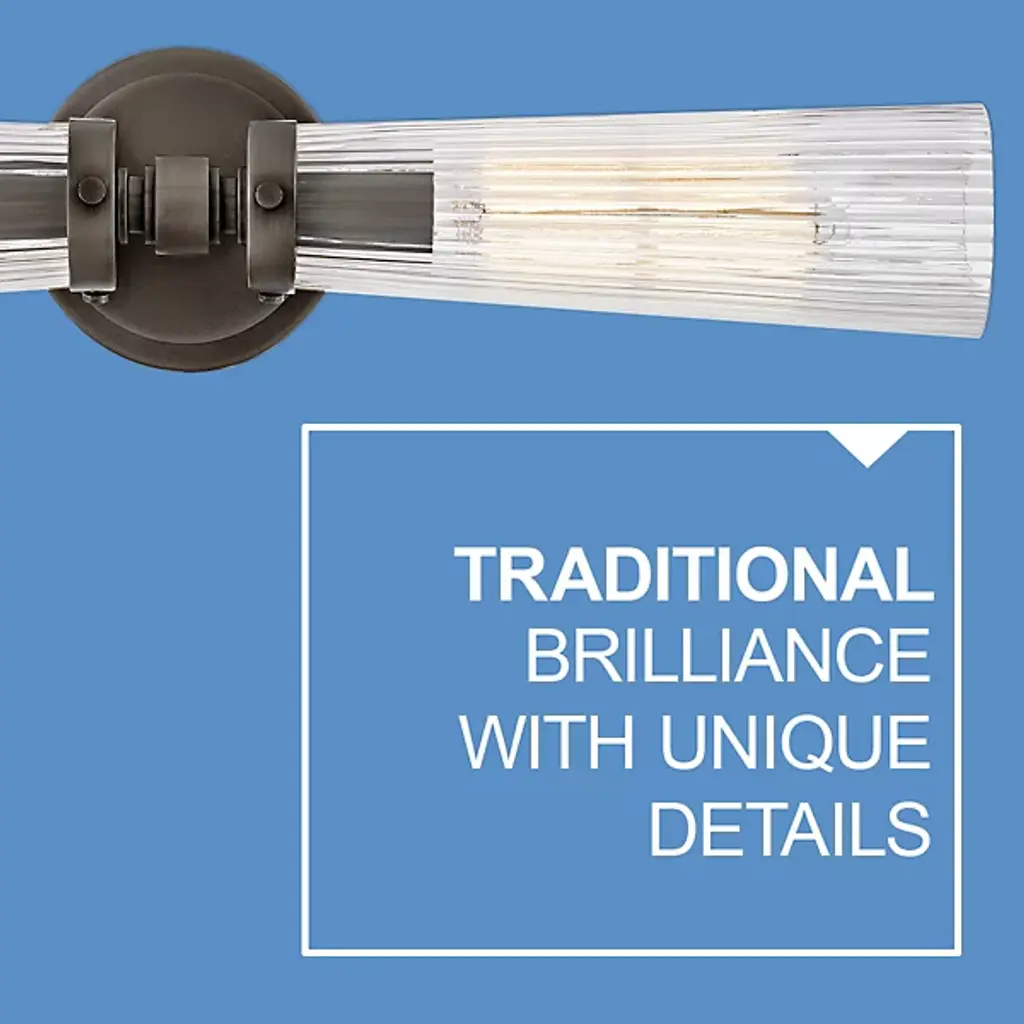 Elevate everyday spaces with the Jude Vanity Light from Hinkley Lighting, infusing them with a touch of traditional brilliance. The fixtures in this family embody timeless elegance, showcasing fluted glass held securely in place by decorative knobs for a classic and refined aesthetic. The light gracefully extends from both sides, forming a striking and functional silhouette. With meticulous attention to detail and a unique finish, this product seamlessly combines traditional charm with functional design.
