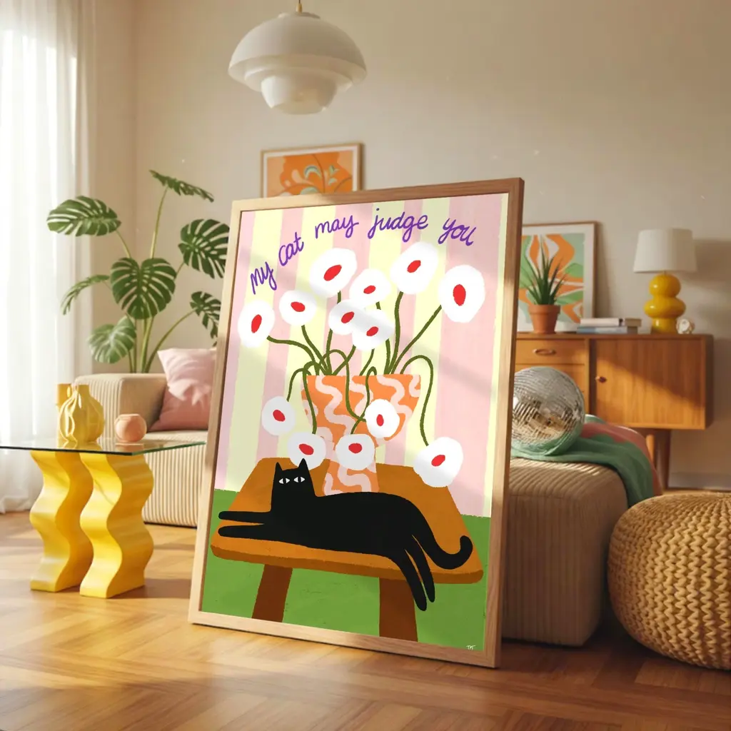 Judge You - Cat Art Print - LargeIllustrated by Maria. This print is perfect for all cat lovers alike! Printed in the U.K.Printed on premium matte, fine art, archival paperPaper weight: 230 gsmSold without a frame.
