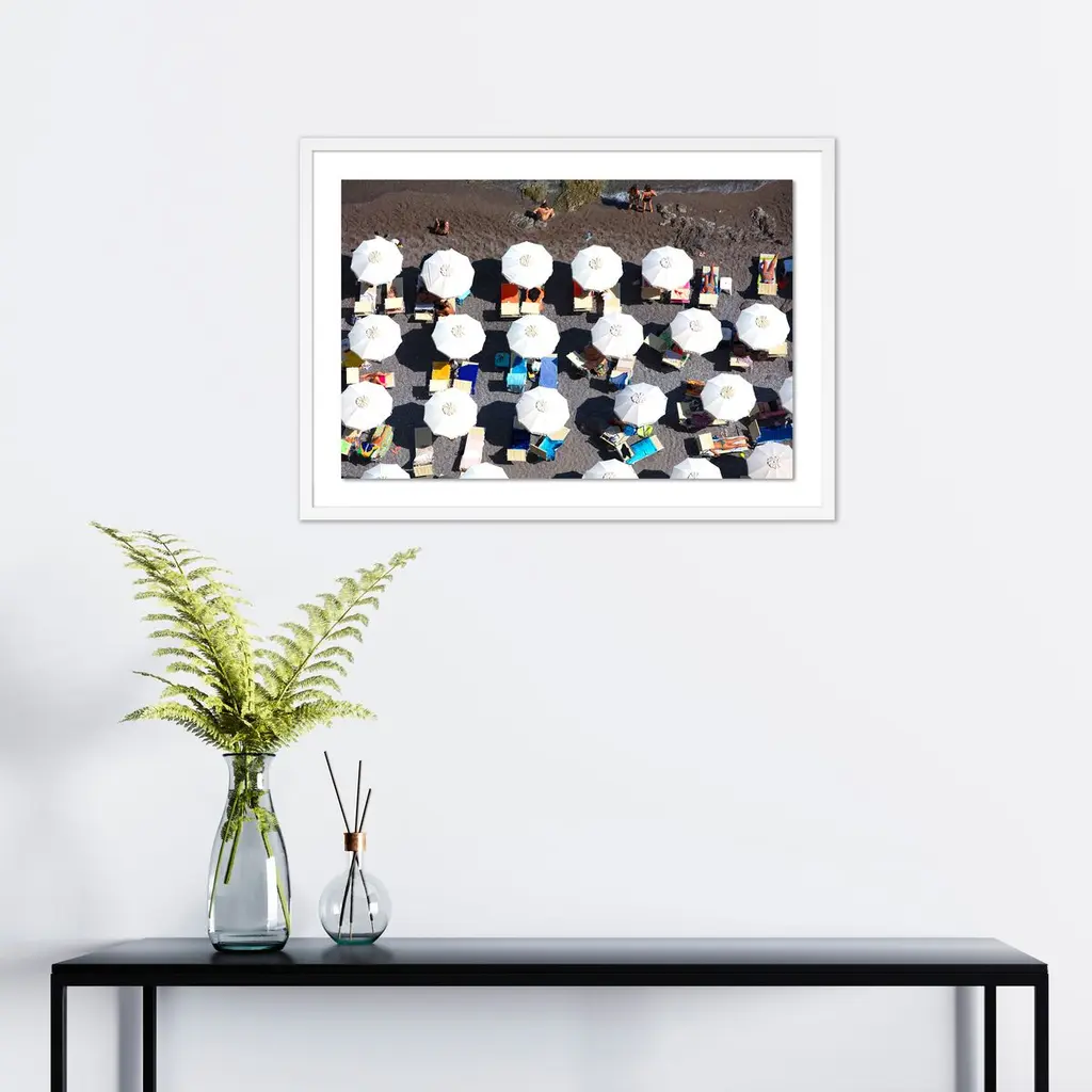 If ever a photograph captured la dolce vita, it's this aerial shot by Judith Gigliotti of an Italian beach on a brilliantly sunny day. The giclée print arrives framed and ready to hang.Judith Gigliotti was born in Chicago and attended Boston University, the Sorbonne, and the California College of Arts and Crafts. Before turning to photography, she explored painting, textiles, and ceramics. She gains her energy and inspiration from her seven children, seven grandchildren, husband, and yellow Lab.