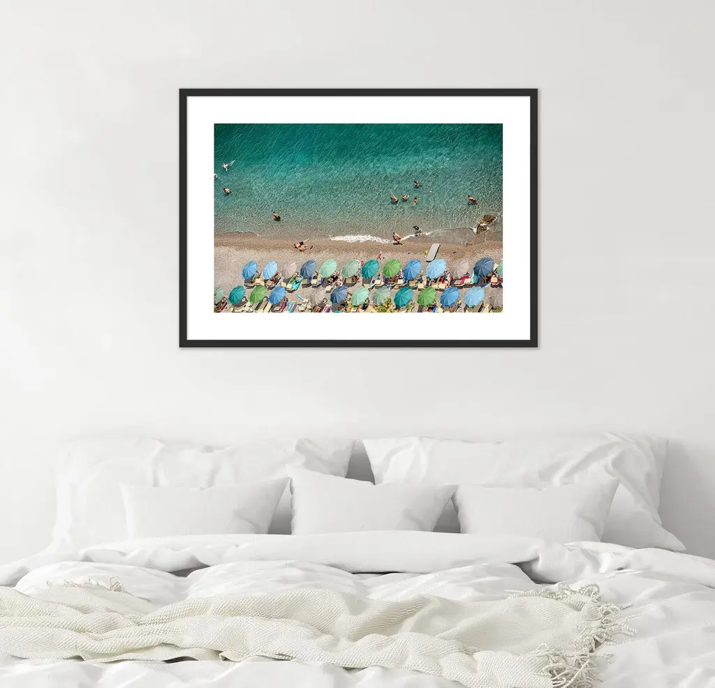 Exclusive to One Kings Lane: This aerial photograph of an Italian beach on a sultry day lets you savor the joys of summer year-round. It arrives matted, framed, and ready to hang.Judith Gigliotti was born in Chicago and attended Boston University, the Sorbonne, and the California College of Arts and Crafts. Before turning to photography, she explored painting, textiles, and ceramics. She gains her energy and inspiration from her seven children, seven grandchildren, husband, and yellow Lab.