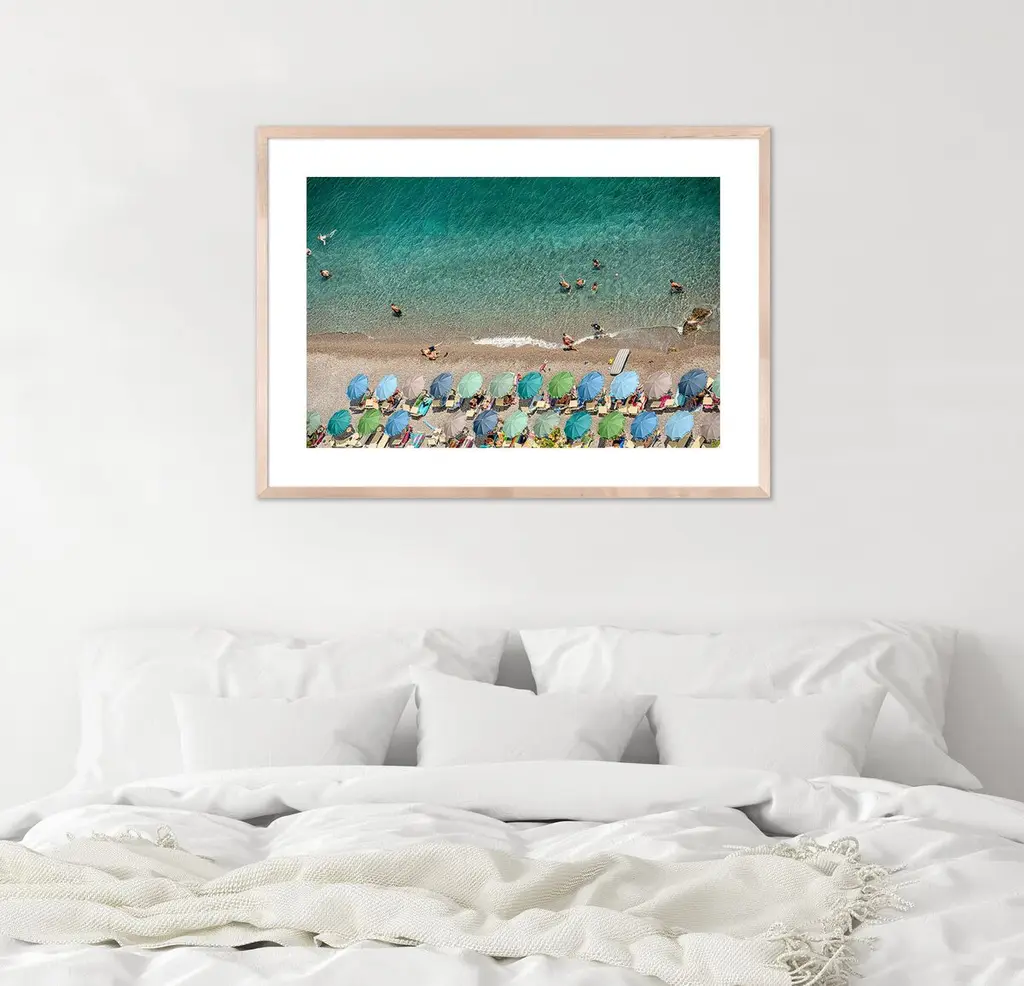 Exclusive to One Kings Lane: This aerial photograph of an Italian beach on a sultry day lets you savor the joys of summer year-round. It arrives matted, framed, and ready to hang.Judith Gigliotti was born in Chicago and attended Boston University, the Sorbonne, and the California College of Arts and Crafts. Before turning to photography, she explored painting, textiles, and ceramics. She gains her energy and inspiration from her seven children, seven grandchildren, husband, and yellow Lab.