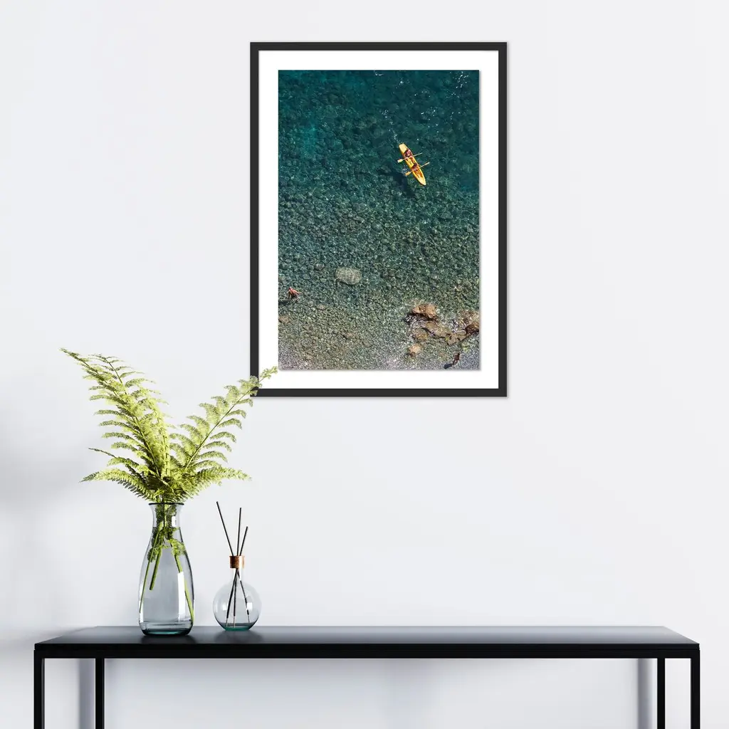 If any photograph captures the blissful serenity of the crystal waters off the Italian coast, it's this aerial shot by Judith Gigliotti. The giclée print arrives framed and ready to hang.Judith Gigliotti was born in Chicago and attended Boston University, the Sorbonne, and the California College of Arts and Crafts. Before turning to photography, she explored painting, textiles, and ceramics. She gains her energy and inspiration from her seven children, seven grandchildren, husband, and yellow Lab.
