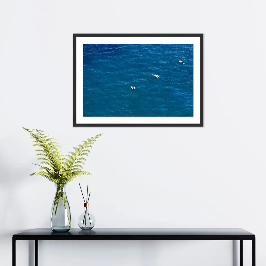 The next best thing to floating amid the sparkling blue waters off the Italian coast? Gazing at this aerial photo by Judith Gigliotti depicting others doing so. The giclée print arrives framed and ready to hang.Judith Gigliotti was born in Chicago and attended Boston University, the Sorbonne, and the California College of Arts and Crafts. Before turning to photography, she explored painting, textiles, and ceramics. She gains her energy and inspiration from her seven children, seven grandchildren, husband, and yellow Lab.