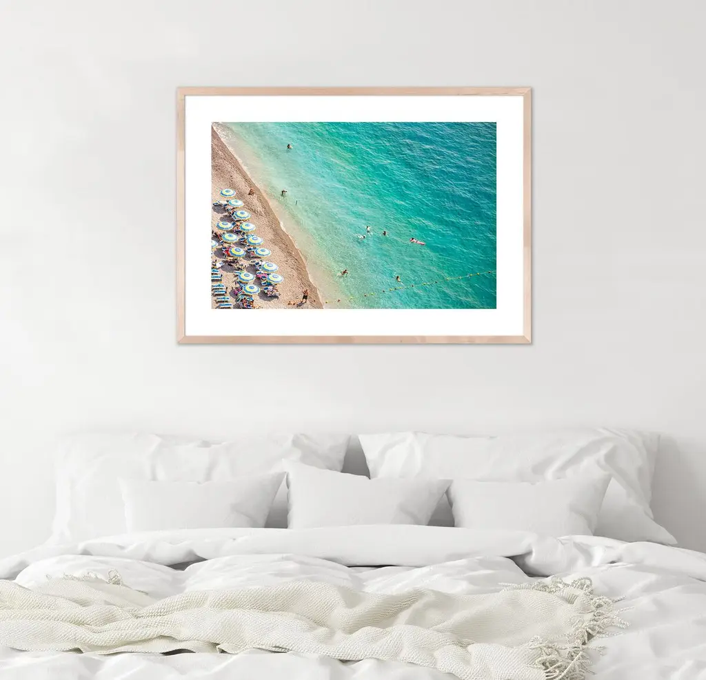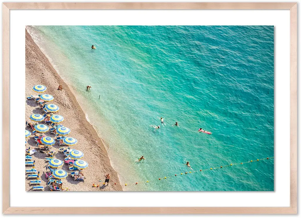 Exclusive to One Kings Lane: This aerial photograph of Italian beachgoers amid sand and surf lets you savor the halcyon days of summer year-round. It arrives matted, framed, and ready to hang.Judith Gigliotti was born in Chicago and attended Boston University, the Sorbonne, and the California College of Arts and Crafts. Before turning to photography, she explored painting, textiles, and ceramics. She gains her energy and inspiration from her seven children, seven grandchildren, husband, and yellow Lab.