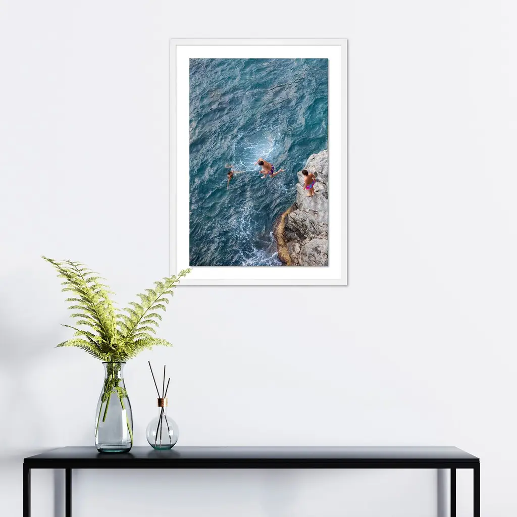 If any photograph captures la dolce vita, it's this aerial shot of boaters and swimmers in the azure waters off the Amalfi coastline. It arrives matted, framed, and ready to hang. Judith Gigliotti was born in Chicago and attended Boston University, the Sorbonne, and the California College of Arts and Crafts. Before turning to photography, she explored painting, textiles, and ceramics. She gains her energy and inspiration from her seven children, seven grandchildren, husband, and yellow Lab.