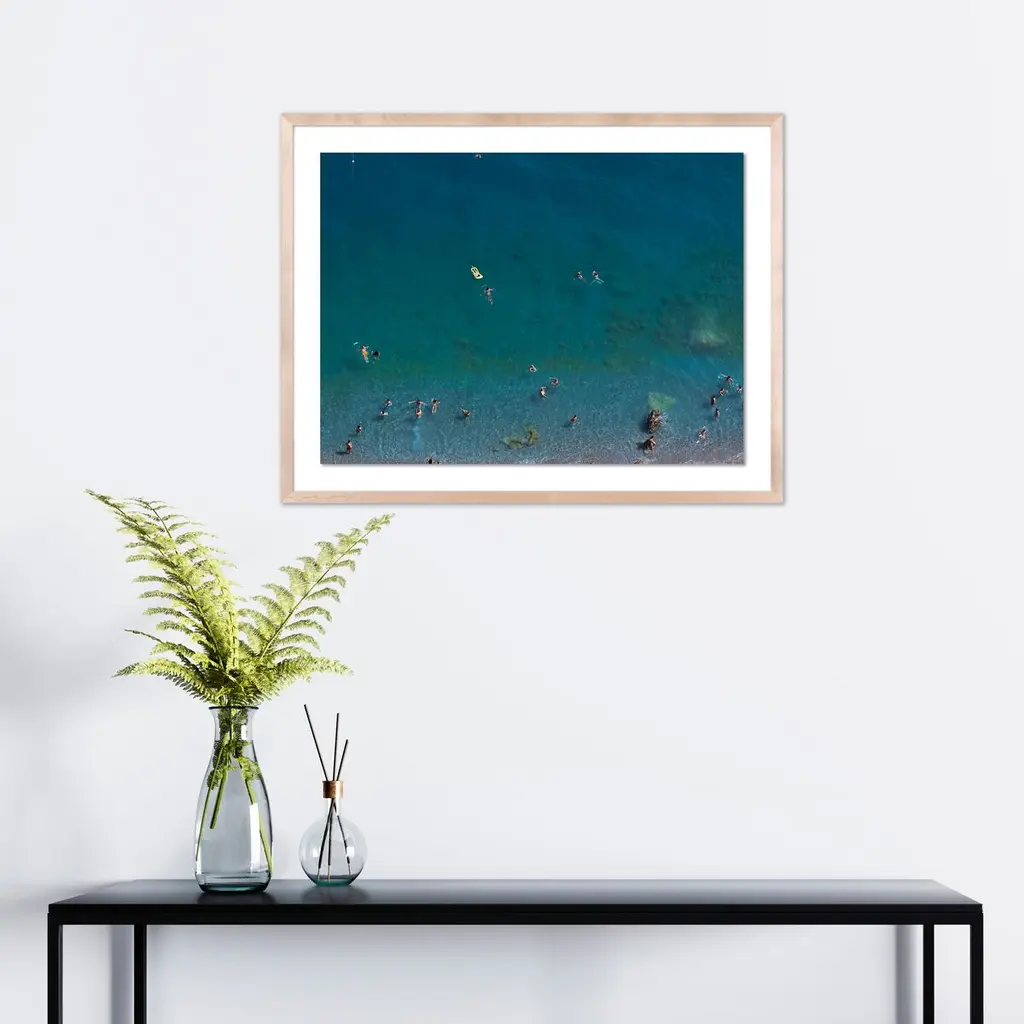 This aerial photo by Judith Gigliotti of the waters off the Italian coast allows you to savor the joys of summer year-round. The giclée print arrives framed and ready to hang.Judith Gigliotti was born in Chicago and attended Boston University, the Sorbonne, and the California College of Arts and Crafts. Before turning to photography, she explored painting, textiles, and ceramics. She gains her energy and inspiration from her seven children, seven grandchildren, husband, and yellow Lab.
