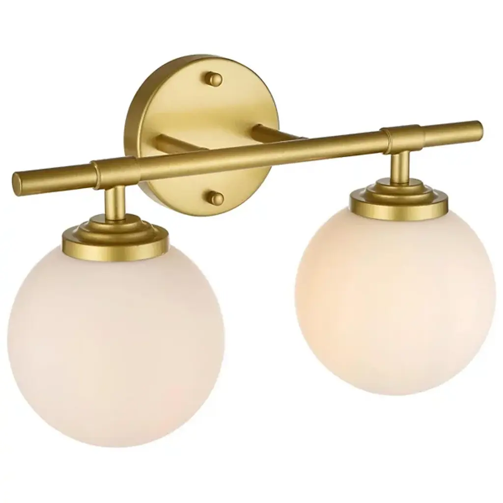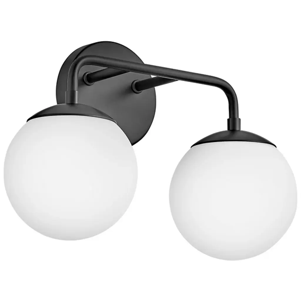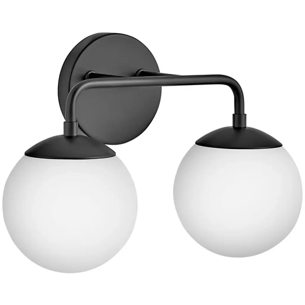 An eloquent modern design suitable for a range of inside spaces. The Julep Vanity Light from Lark is best employed over a bathroom mirror and can be oriented upward or downward, relying on two short rods emerging from a circular wall plate to secure a curving crossbar, each one adding a series of short rods and dish-shaped housings that extend strong, damp-listed lamping inside a round shade of etched opal glass. These wraparound diffusers cut brightness from the lamping, shedding a soft, even glow in all directions that reflects softly off its robust steel surface.