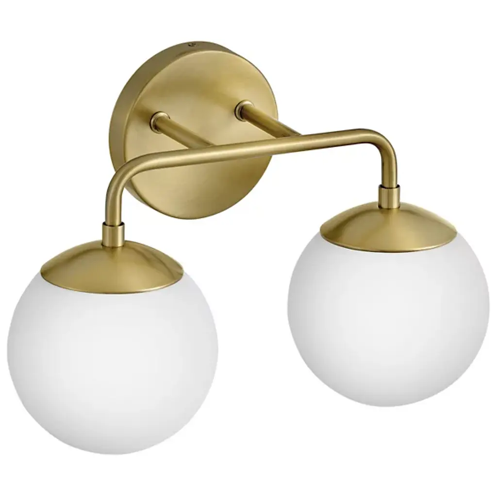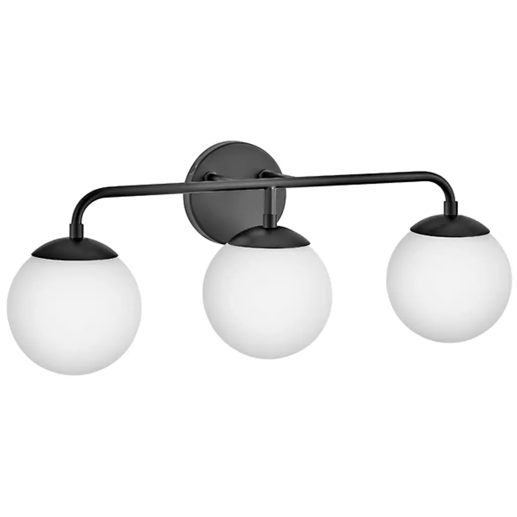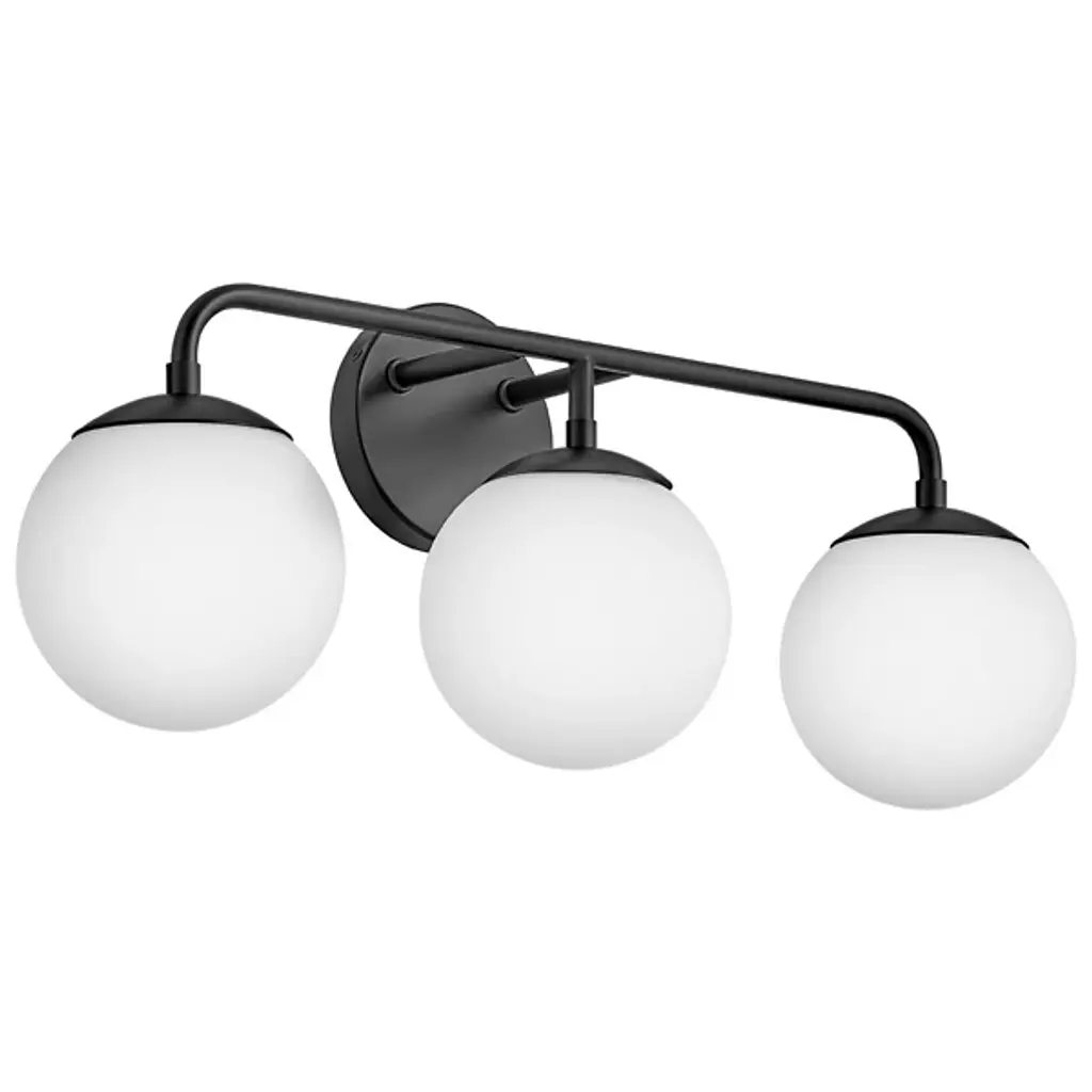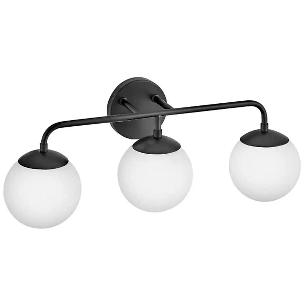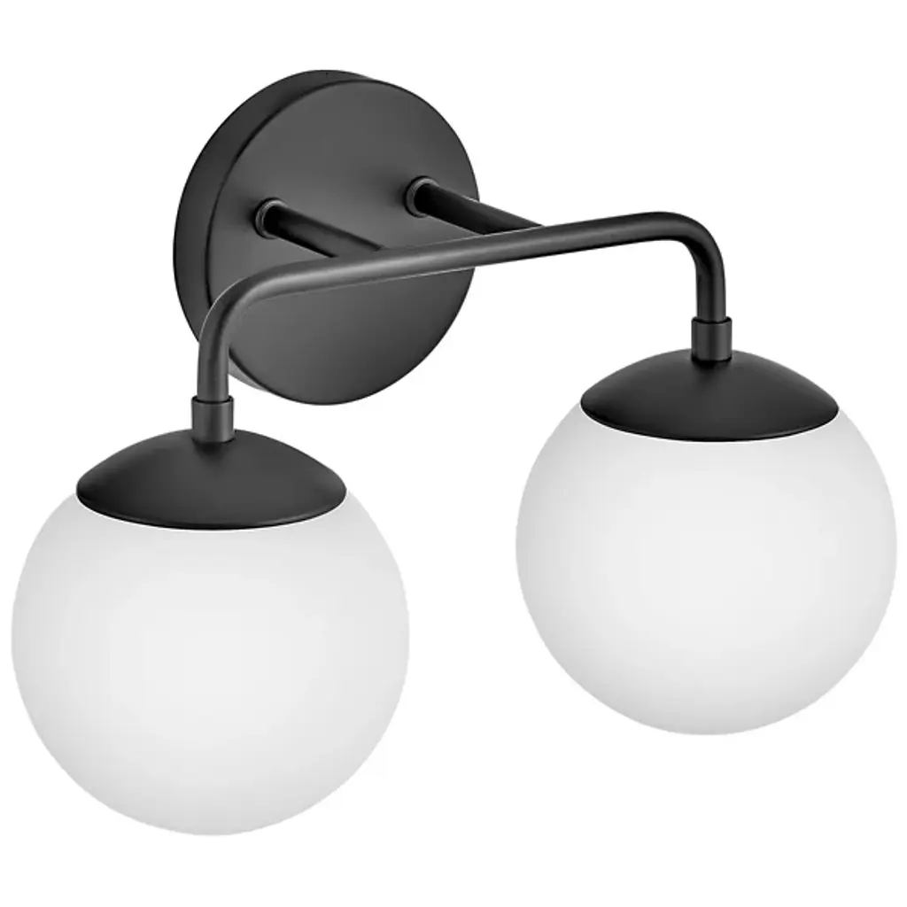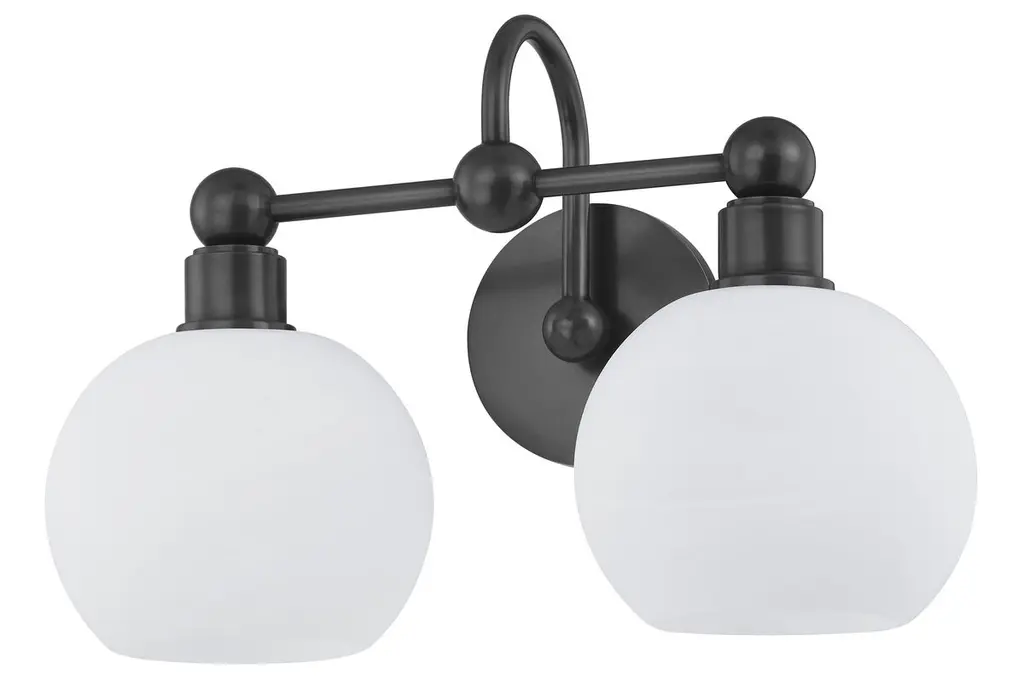 An eloquent modern design suitable for a range of inside spaces. The Julep Vanity Light from Lark is best employed over a bathroom mirror and can be oriented upward or downward, relying on two short rods emerging from a circular wall plate to secure a curving crossbar, each one adding a series of short rods and dish-shaped housings that extend strong, damp-listed lamping inside a round shade of etched opal glass. These wraparound diffusers cut brightness from the lamping, shedding a soft, even glow in all directions that reflects softly off its robust steel surface.