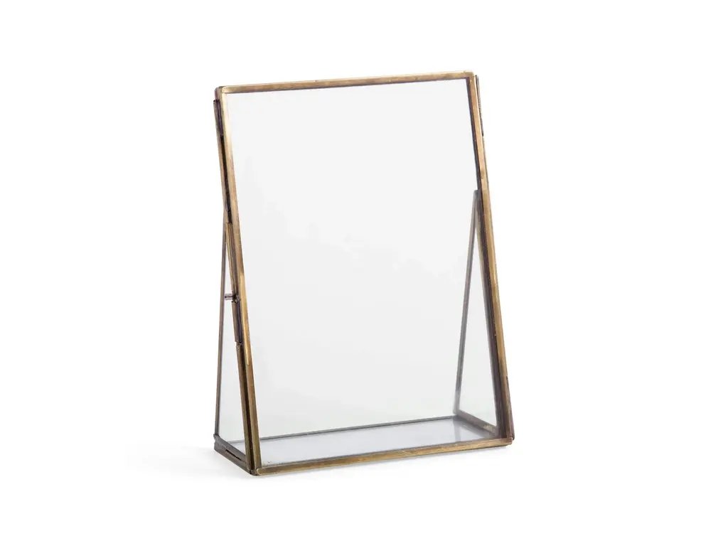 Showcase treasured memories and highlight your décor with a personal touch. These simple brass and glass picture frames are thoughtfully crafted from brass with a slightly antique patina to accentuate photographs or small artwork enclosed within. Handcrafted from brass and glass. Made by Indian artisans.