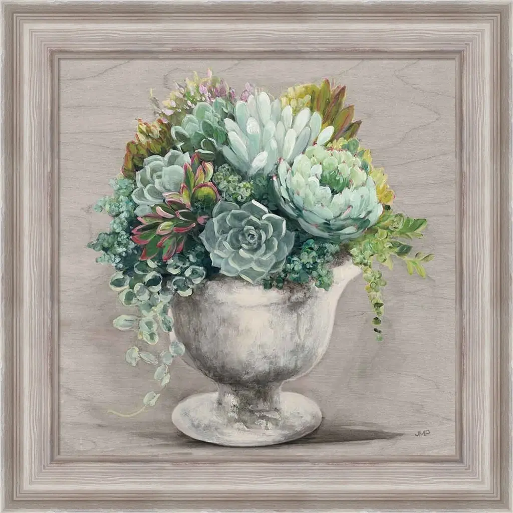 Festive Succulents I Gray by Julia Purinton is a high quality piece of framed artwork. The finished size of this piece is 20" X 20". It has a Weathered White Distressed frame and is finished with high quality Acrylic Plexiglass.. 100% Satisfaction Guaranteed.