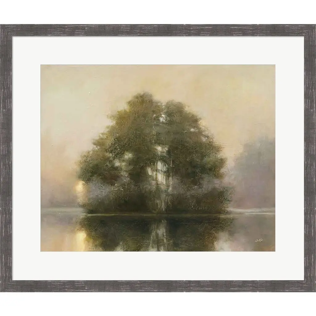 Lake Dawn by Julia Purinton is a high quality piece of framed artwork. The finished size of this piece is 26.5" X 22.5". It has a Rustic Grey Distressed frame, is single matted and finished with high quality Acrylic Plexiglass. 100% Satisfaction Guaranteed.