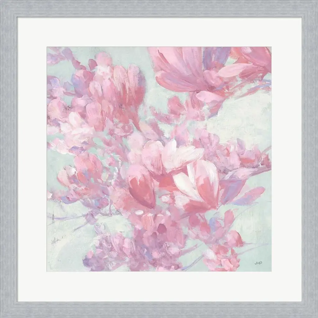 Spring Magnolia I by Julia Purinton is a high quality piece of framed artwork. The finished size of this piece is 19.5" X 19.5". It has a Slim Platinum Silver frame, is single matted and finished with high quality Glass. 100% Satisfaction Guaranteed.