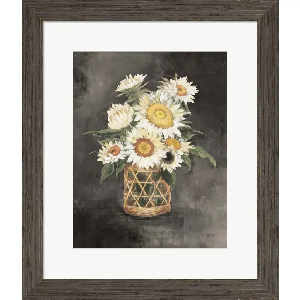 Sunflowers in Rattan Black Crop by Julia Purinton is a high quality piece of framed artwork. The finished size of this piece is 19.5" X 22.75". It has a Weathered White Washed Deep Gray frame, is single matted and finished with high quality Acrylic Plexiglass. 100% Satisfaction Guaranteed.