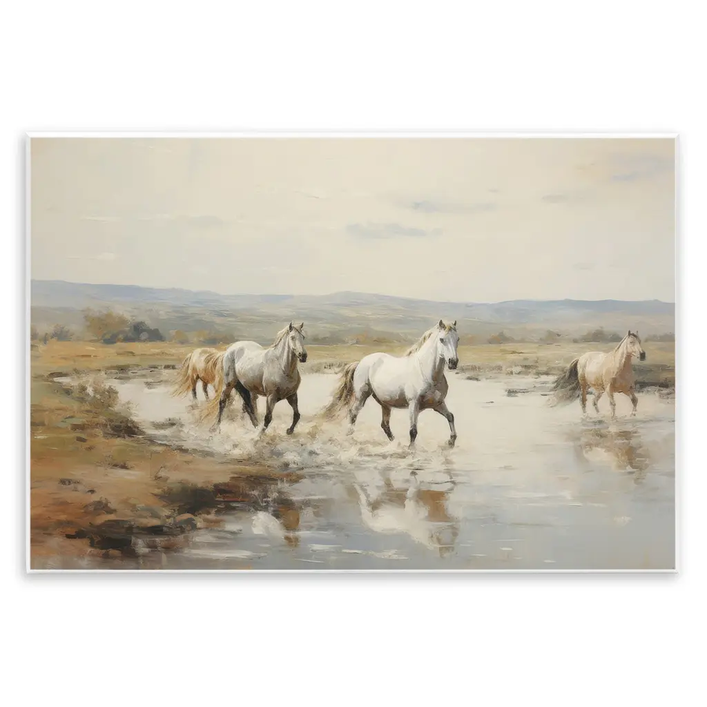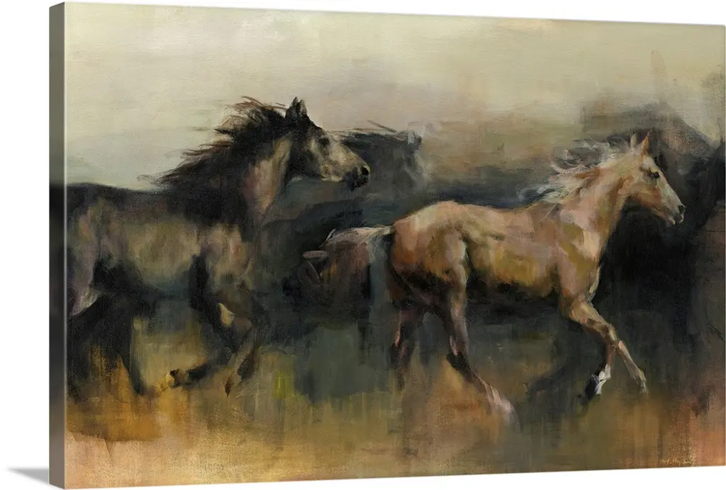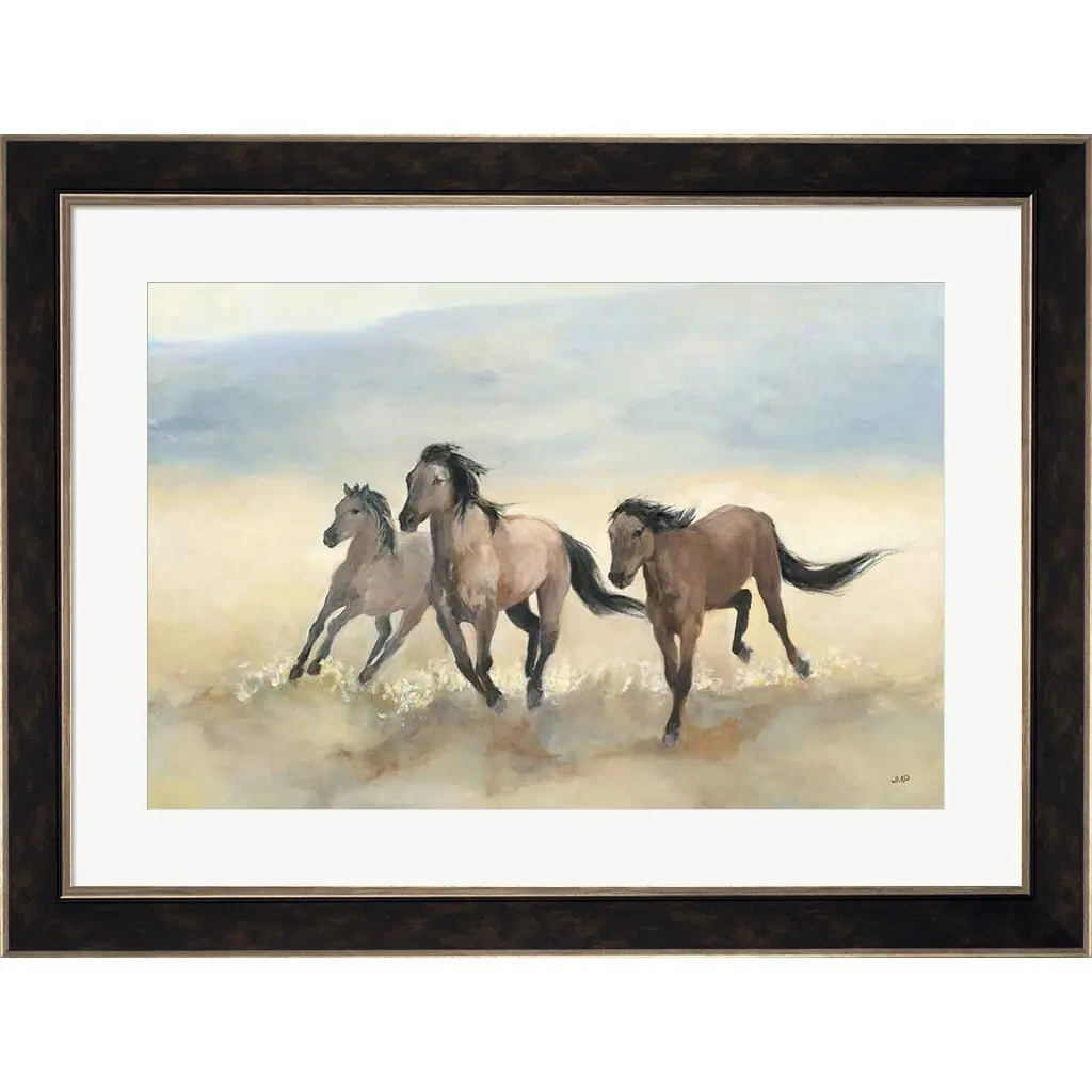 Wild Mustangs by Julia Purinton is a high quality piece of framed artwork. The finished size of this piece is 32.5" X 24.5". It has a Bronze Washed Espresso Brown with Bronze Edges frame, is single matted and finished with high quality Acrylic Plexiglass. 100% Satisfaction Guaranteed.