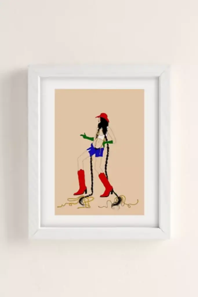 Art print by Juliana Kokolari featuring a kitschy Western character. Printed on archival paper made from cotton pressed in Italian mills, this high-quality art print is available in sizes and frames just right for your space. First select your frame (or go frameless), then select your size. **About the Frames** \- The exact width of each frame may vary slightly \- All frames are manufactured in the US \- Matte frames are durable poly \- Wood frames are recycled wood \- All are fitted with protective plexiglass \- Finished with wood moldings, archival backer and protective bumpers **Size** \- Available in multiple sizes \- Use the Size Guides to find the size that fits your space **Content + Care** \- Wipe clean \- Made in the USA