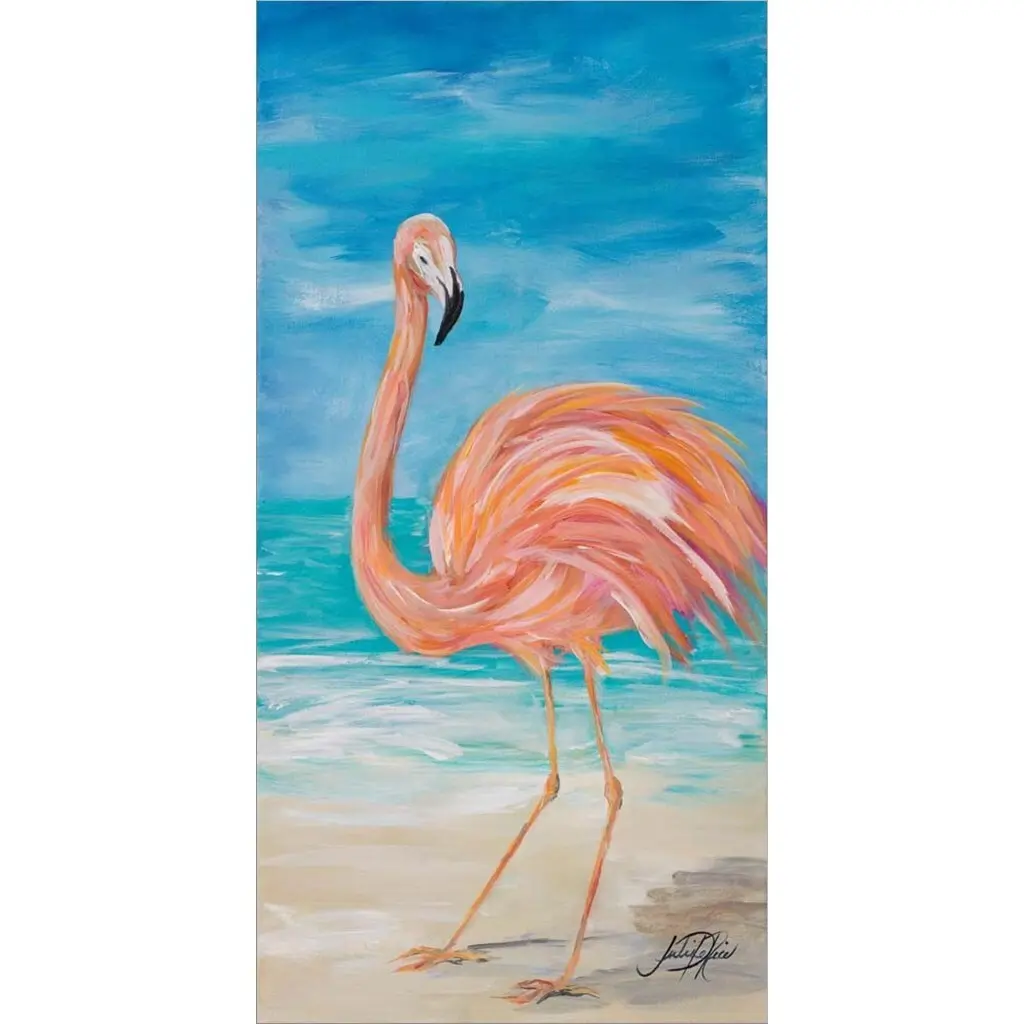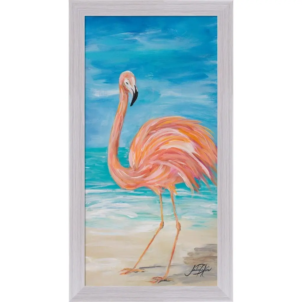 Flamingo II by Julie DeRice is a high quality piece of framed artwork. The finished size of this piece is 16.75" x 30.75". It has a White Washed Light Marble Gray frame and is finished with high quality Acrylic Plexiglass. 100% Satisfaction Guaranteed.