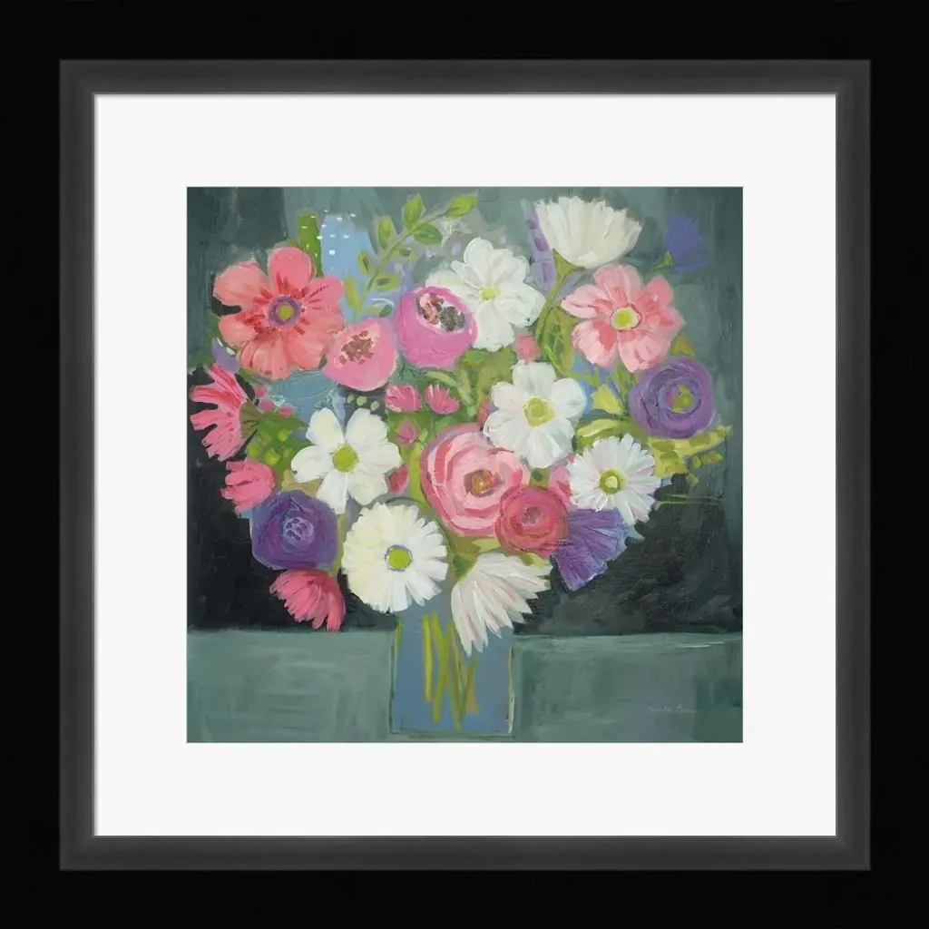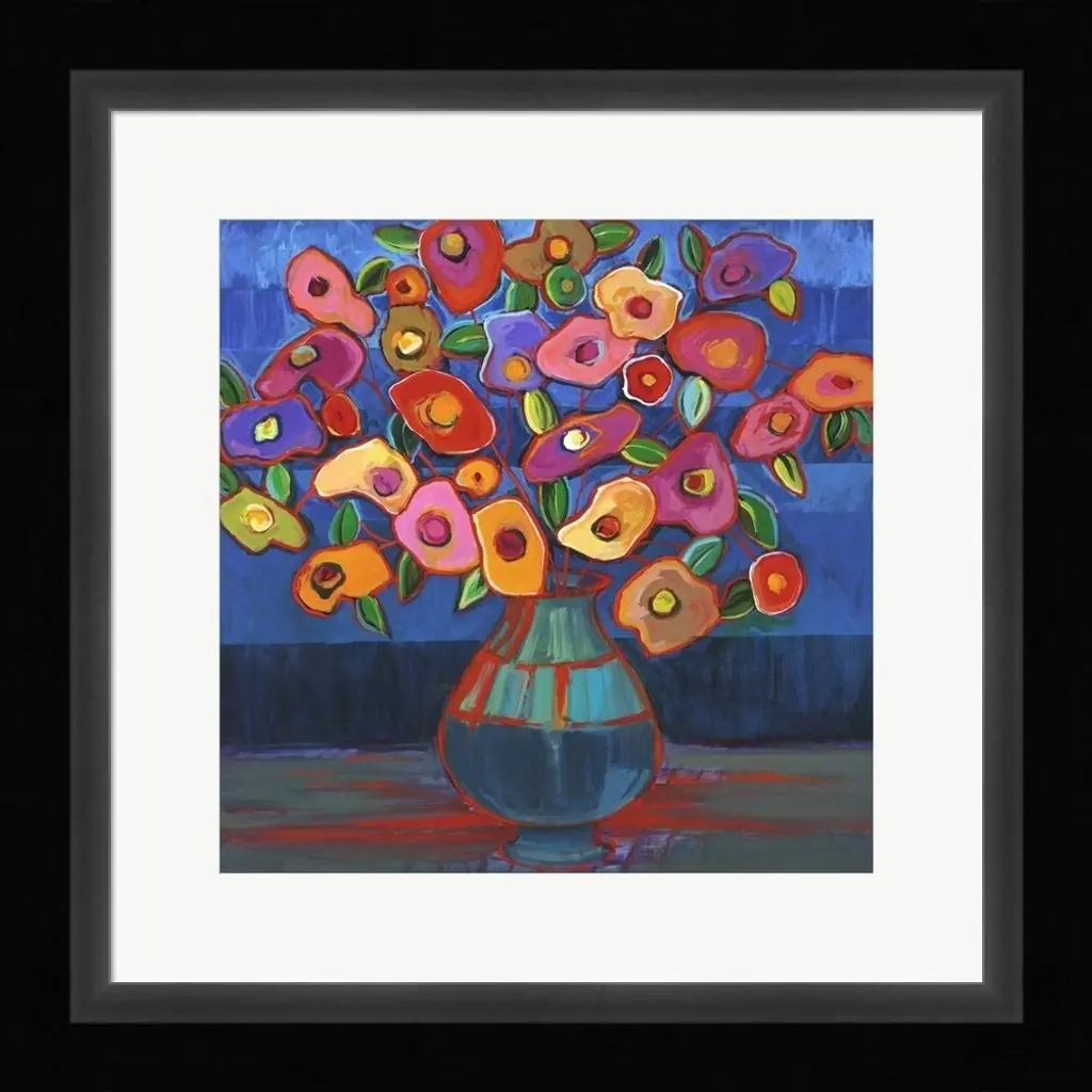 Flower Delight II by Julie Joy is a high quality piece of framed artwork. The finished size of this piece is 23" X 23". It has a Black Slant frame, is single matted and finished with high quality Acrylic Plexiglass.