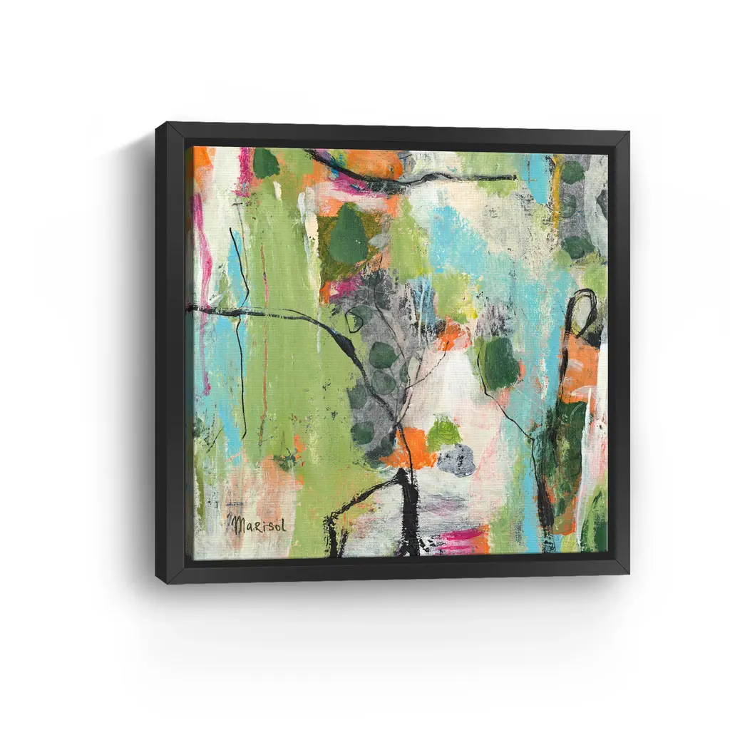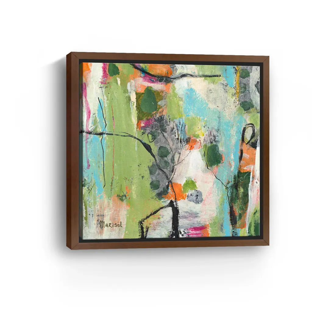 Enhance your living space with this captivating "June" canvas art by Marisol Evora. Featuring a rich palette of green tones and diverse elements, this artwork adds depth and intrigue to any room. The dynamic composition and vibrant hues create a striking visual experience, making it a perfect statement piece for both contemporary and classic interiors. Available in black frame, dark walnut frame, oak frame, or as a wrapped canvas. Our Gallery Wrap Canvas Prints are proudly assembled with high quality materials in California, USA. Each piece is printed on a thick, archival grade canvas using Giclee technology. It is then hand-stretched by our experienced artisans over solid wood bars, which will not warp over time. The final product is a piece personally crafted for you to confidently display on your wall. Care and Assembly: Ensure that the location of your piece has little to no exposure to heat, sunlight, and moisture. Wipe clean, only if needed. Each piece includes a sawtooth hanger to hang on your wall horizontally.