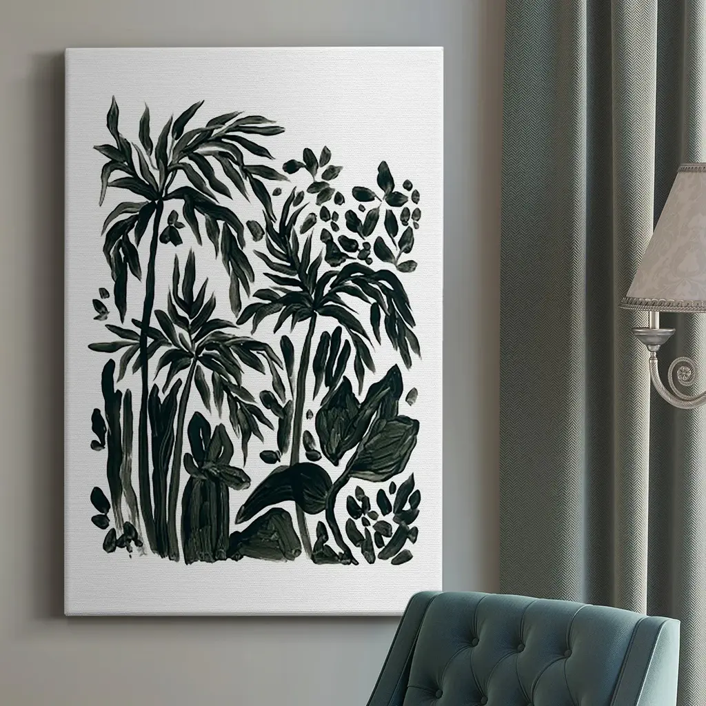 Palm Shadows I by June Erica Vess is a high quality piece of canvas artwork. The finished size of this piece is 25.5" X 34", and it has a depth 1.5". There is a UV protective coating over the entire image, and it is ready to hang on your wall with no hardware required. 100% Satisfaction Guaranteed.