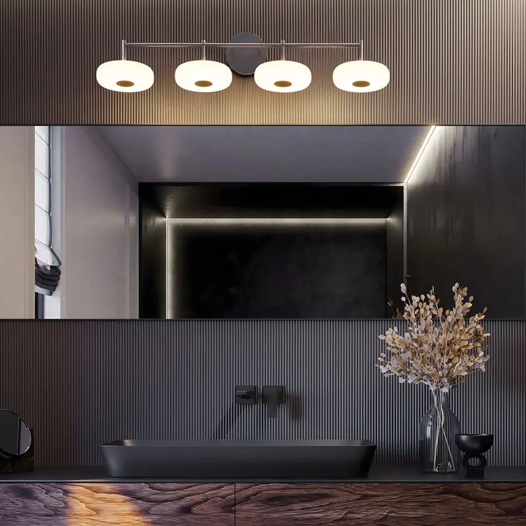 A sleek and modern solution for the contemporary bath, the June LED Bathroom Vanity Light from AFX offers both style and customizable ambiance. This versatile light bar features a steel frame and a white acrylic diffuser for soft, even illumination. Its innovative design allows you to select from five light color temperatures to create the perfect atmosphere for any task. Fully dimmable and able to be mounted horizontally or vertically, it’s a sophisticated and highly adaptable fixture for any bathroom space. Highlights: