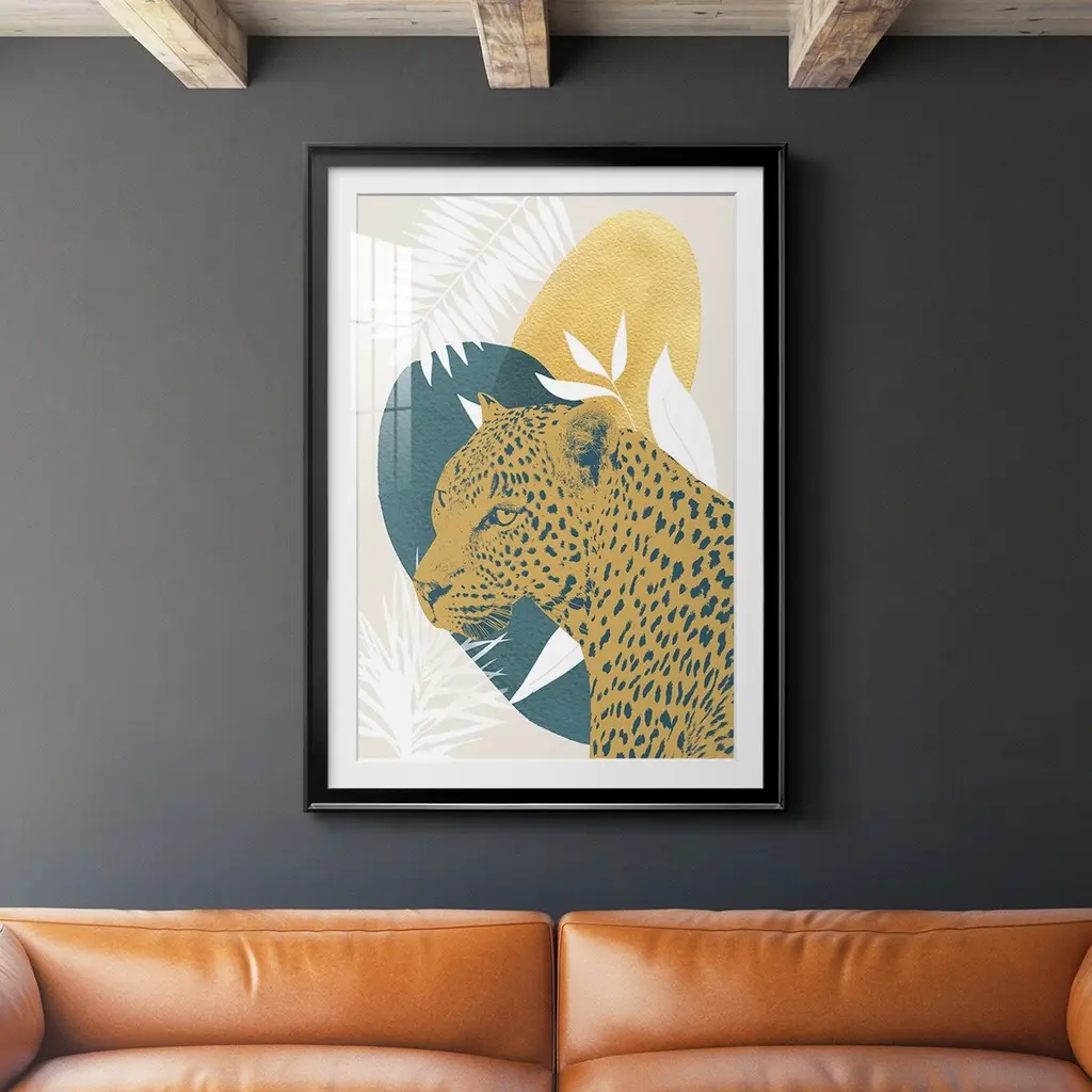 Jungle Cat II Premium Framed Print - Ready to Hang A Premium Framed Print created to last. Framed in distressed wood and available in an array of sizes and colors Featuring a beveled a solid wood stretcher bar, each piece comes ready to hand 4 SIZES AVAILABLE 30.5''X42.5'' - Overall Size 26.5'X36.5'' - Overall Size 22.5''x30.5'' - Overall Size 18.5''x24.5'' - Overall Size Each piece is made to order. Each piece comes with hanging hardware. Made in the USA Ready to Hang Giclee Paper Print Acrylic Glass Beveled Matt Board