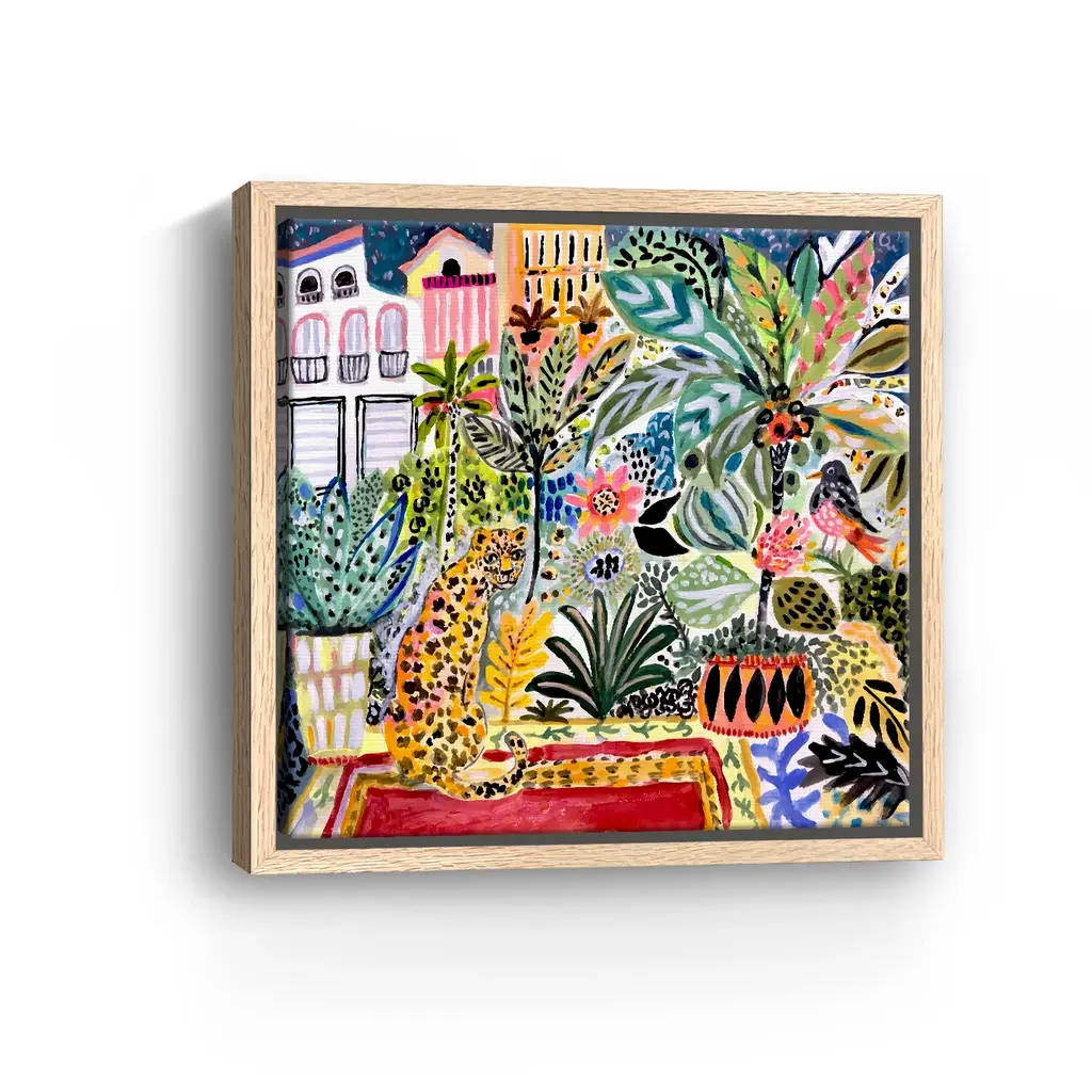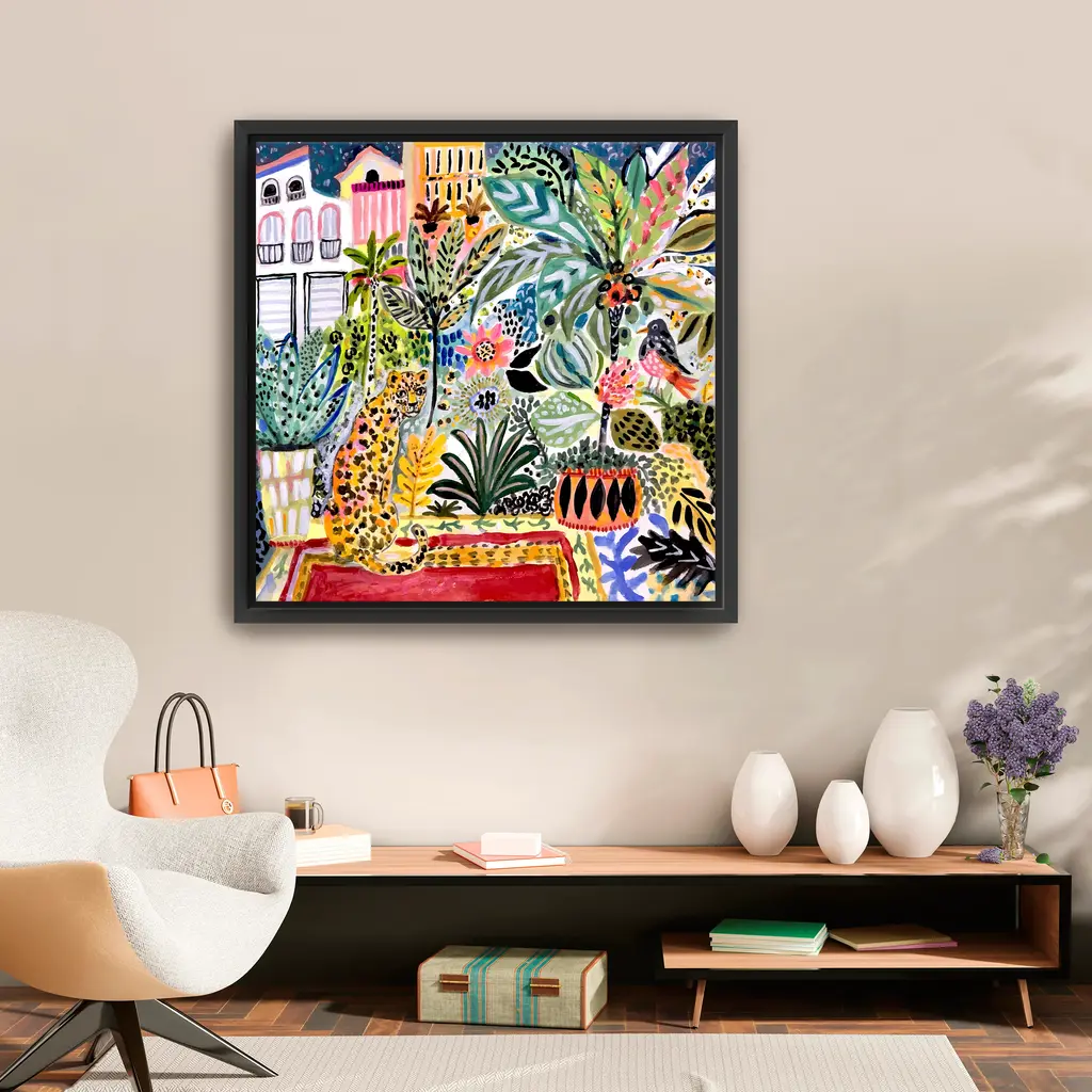 Jungle Cat In Town Canvas Giclee - Framed / Black / 20x20