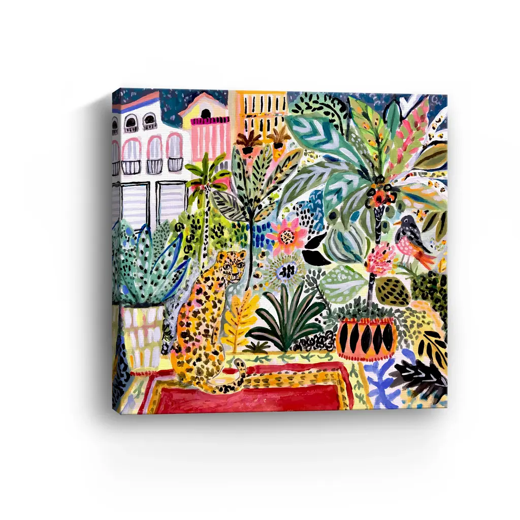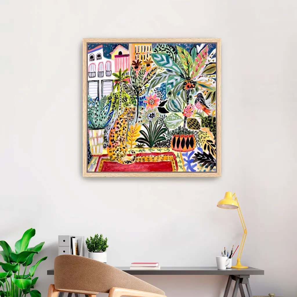 Jungle Cat In Town Canvas Giclee - Framed / Oak / 30x30
