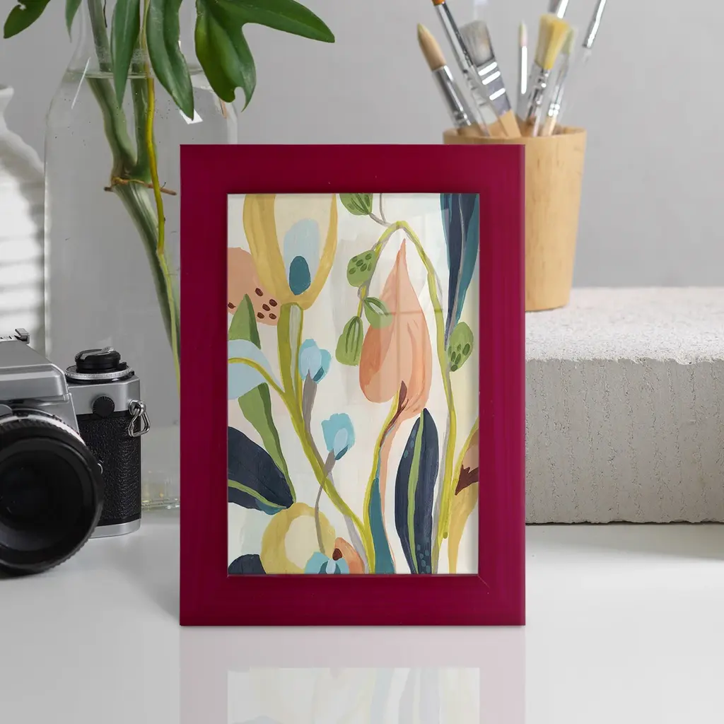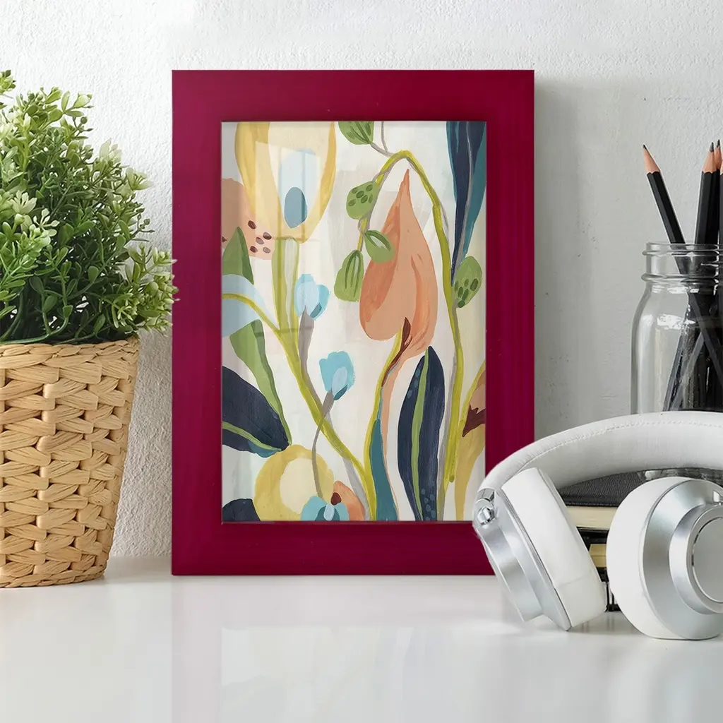 Jungle Jewels I -EZ SWITCH Framed Print w/glass-Cherry Red A delightful, framed print. Featuring a solid wood frame with real wood glass. This premium print is giclee quality. In addition, every frame features a removable back and table top stand. This allows you to change your art in the future or to just stand the art on a table for a new look. We are sure you'll enjoy our new series of EZ SWITCH Framed Art. Solid Wood Frame Real Glass Removable / Replaceable Art Built in Tabletop Stand Sizes range from 4x6 up to 12x15 - buy just one or pair them up as sets as you see fit.