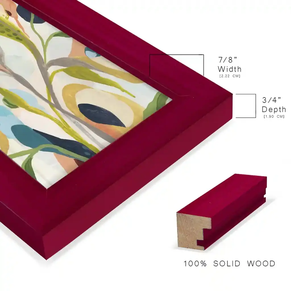 Jungle Jewels IV -EZ SWITCH Framed Print w/glass-Cherry Red A delightful, framed print. Featuring a solid wood frame with real wood glass. This premium print is giclee quality. In addition, every frame features a removable back and table top stand. This allows you to change your art in the future or to just stand the art on a table for a new look. We are sure you'll enjoy our new series of EZ SWITCH Framed Art. Solid Wood Frame Real Glass Removable / Replaceable Art Built in Tabletop Stand Sizes range from 4x6 up to 12x15 - buy just one or pair them up as sets as you see fit.