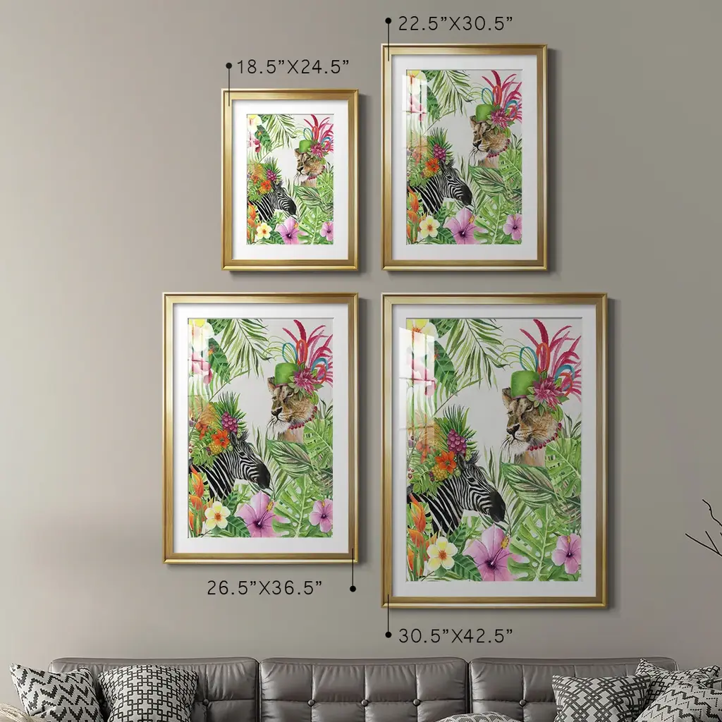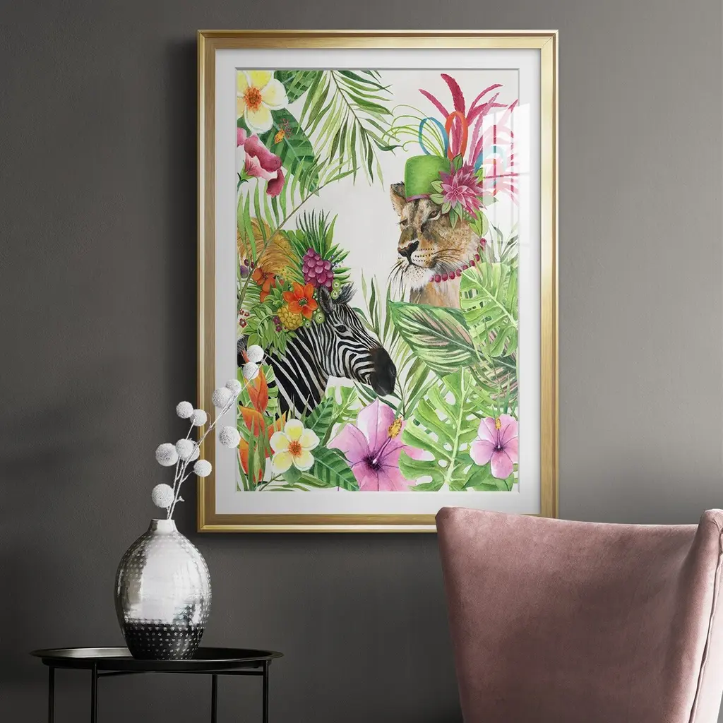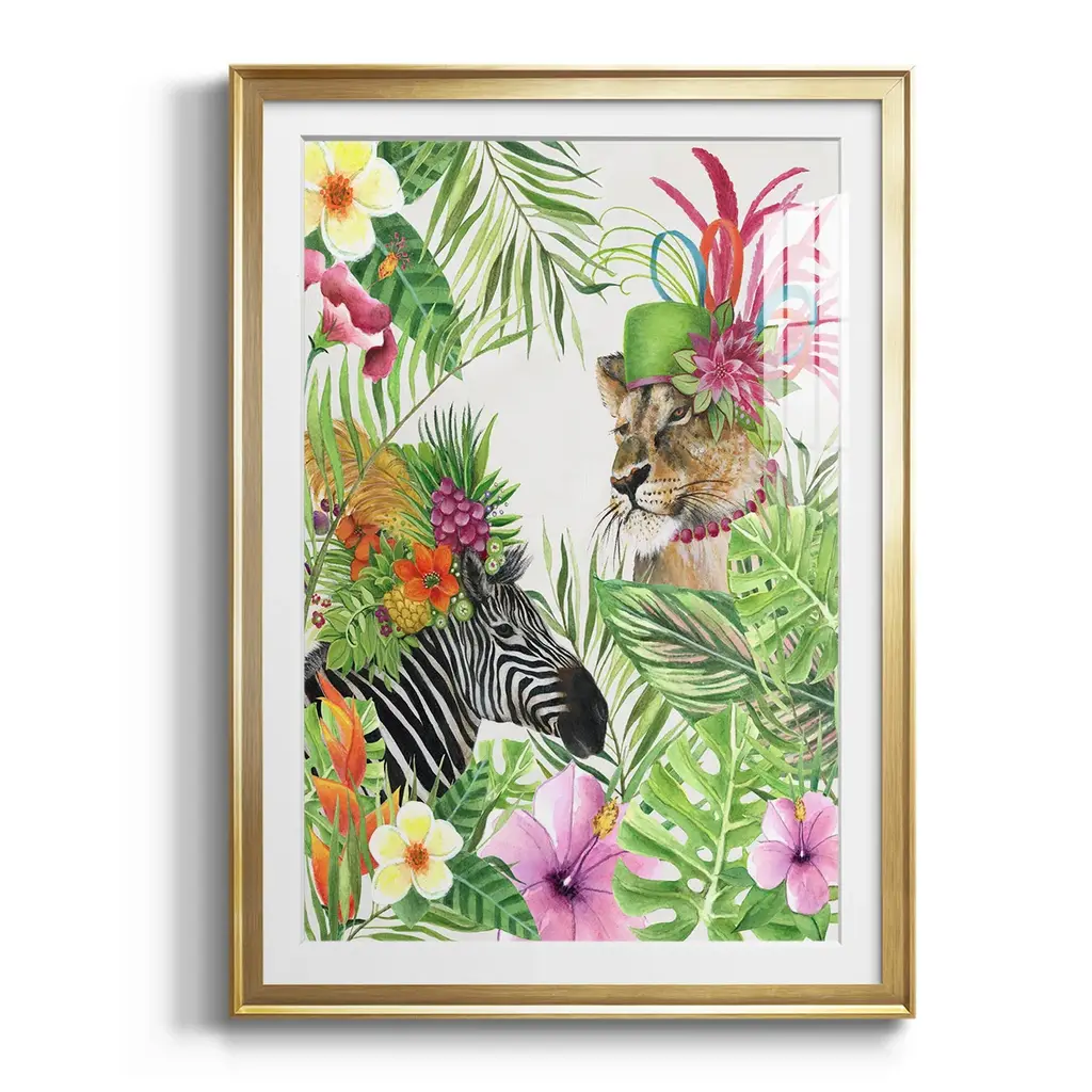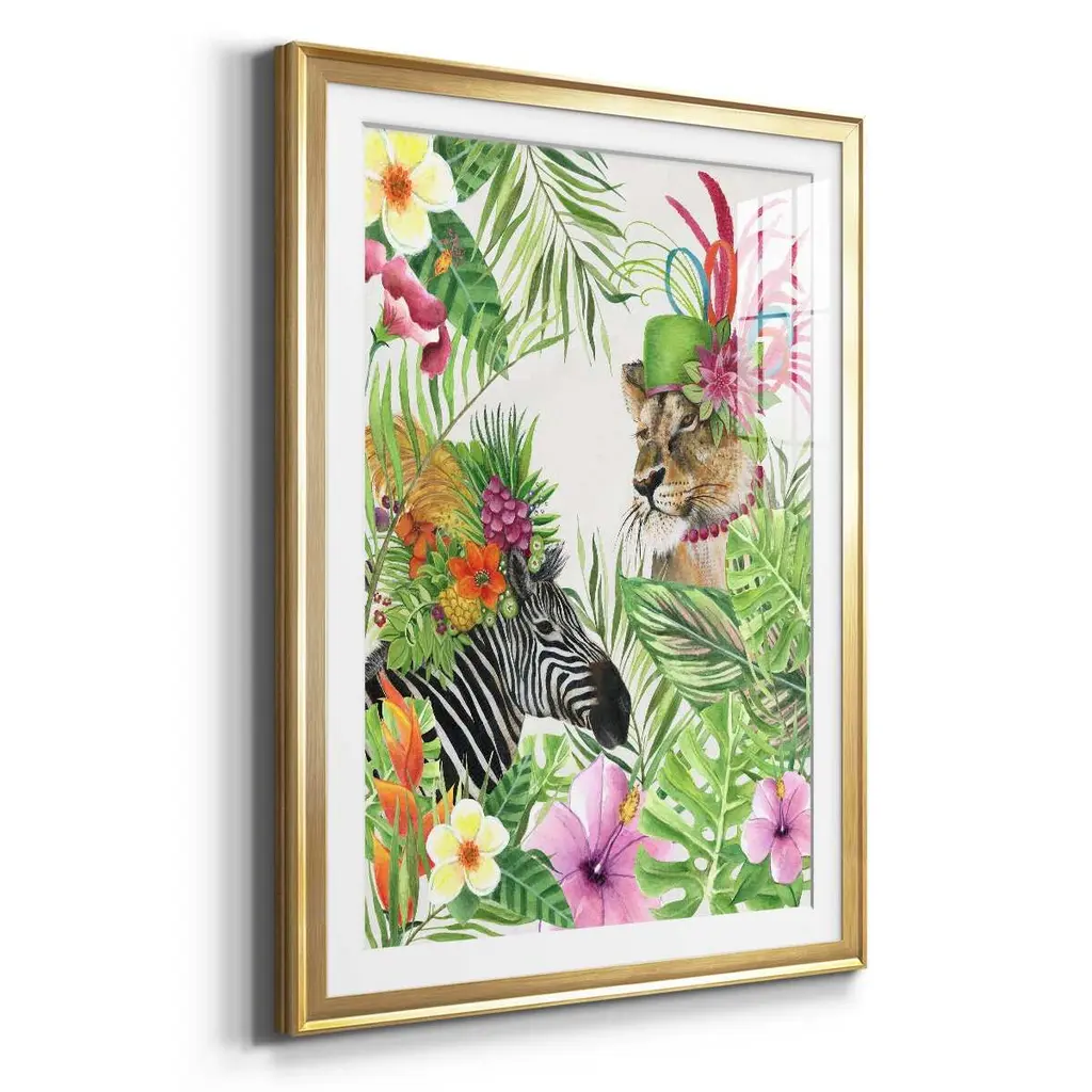 Jungle Royale II Premium Framed Print - Ready to Hang A Premium Framed Print created to last. Framed in distressed wood and available in an array of sizes and colors Featuring a beveled a solid wood stretcher bar, each piece comes ready to hand 4 SIZES AVAILABLE 30.5''X42.5'' - Overall Size 26.5'X36.5'' - Overall Size 22.5''x30.5'' - Overall Size 18.5''x24.5'' - Overall Size Each piece is made to order. Each piece comes with hanging hardware. Made in the USA Ready to Hang Giclee Paper Print Acrylic Glass Beveled Matt Board