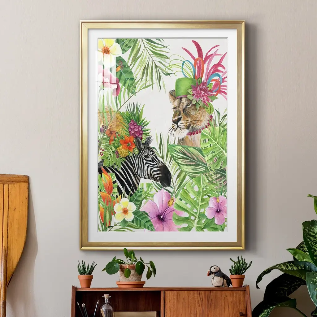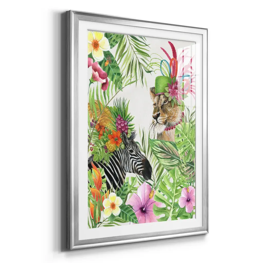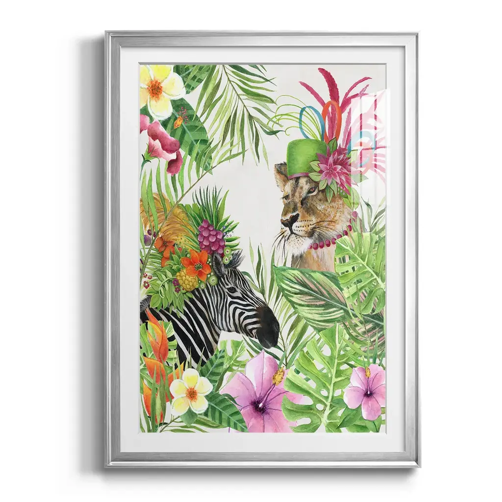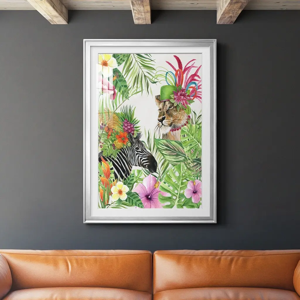 Jungle Royale II Premium Framed Print - Ready to Hang A Premium Framed Print created to last. Framed in distressed wood and available in an array of sizes and colors Featuring a beveled a solid wood stretcher bar, each piece comes ready to hand 4 SIZES AVAILABLE 30.5''X42.5'' - Overall Size 26.5'X36.5'' - Overall Size 22.5''x30.5'' - Overall Size 18.5''x24.5'' - Overall Size Each piece is made to order. Each piece comes with hanging hardware. Made in the USA Ready to Hang Giclee Paper Print Acrylic Glass Beveled Matt Board