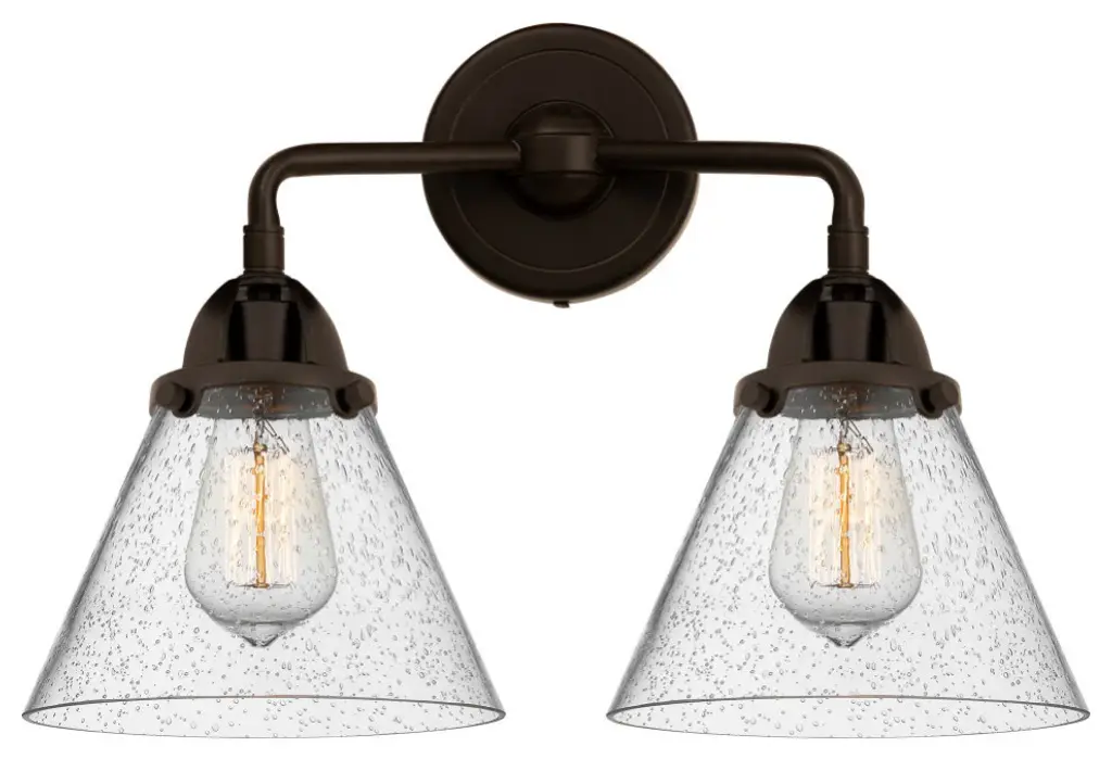 Reinvent your bathroom space with the industrial-inspired Juni 10 Vanity Light by Besa Lighting. Its sophisticated design contrasts a series of clean, handcrafted Bubbled Glass shades with a rugged, Aluminum wallplate and gooseneck socket holders. Lighting comes courtesy of internal filament bulbs that, once lit, radiate through the bubbles for a warm, yet glistening effect.