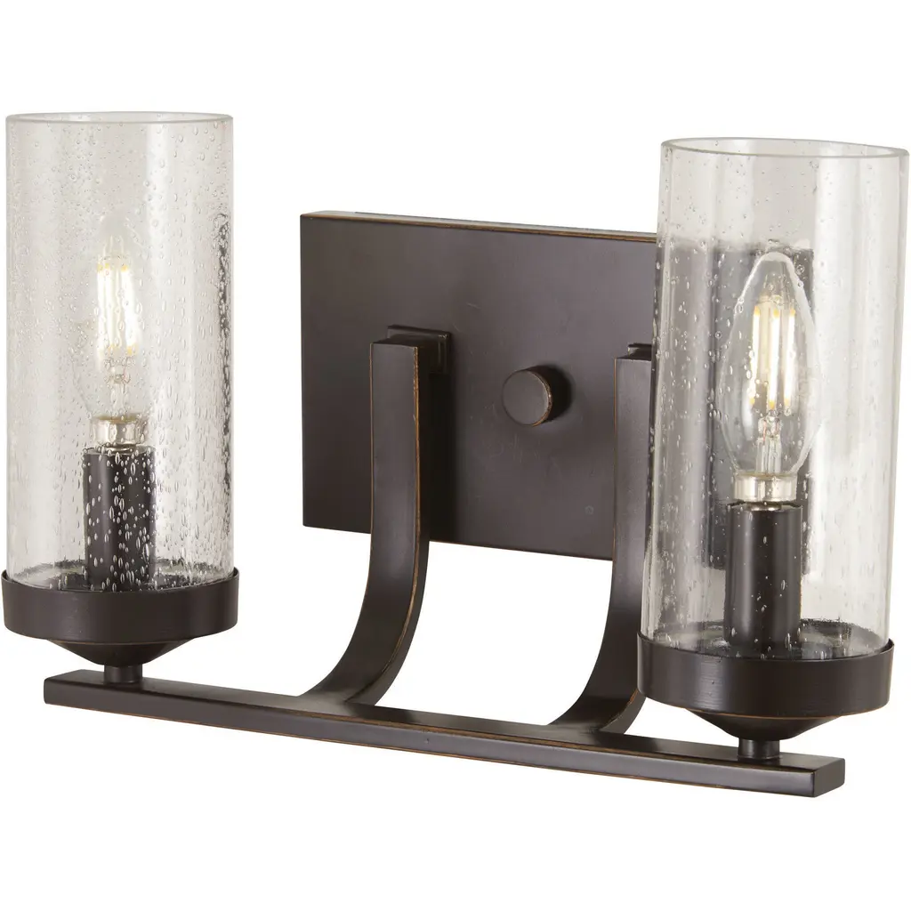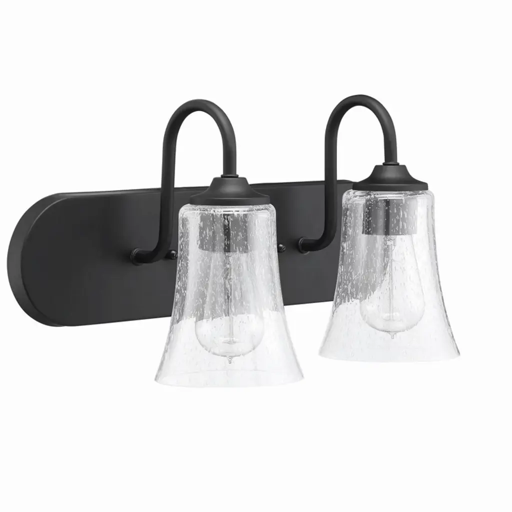 Reinvent your bathroom space with the industrial-inspired Juni 10 Vanity Light by Besa Lighting. Its sophisticated design contrasts a series of clean, handcrafted Bubbled Glass shades with a rugged, Aluminum wallplate and gooseneck socket holders. Lighting comes courtesy of internal filament bulbs that, once lit, radiate through the bubbles for a warm, yet glistening effect.