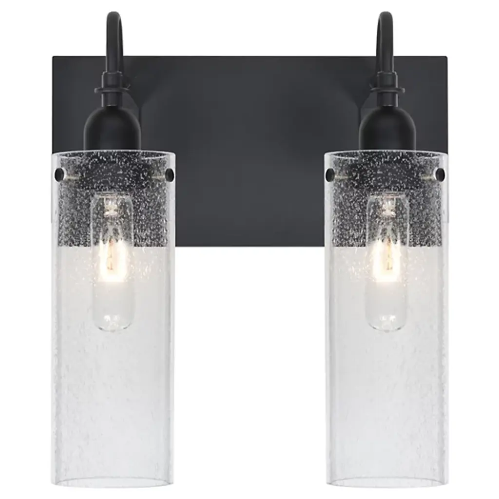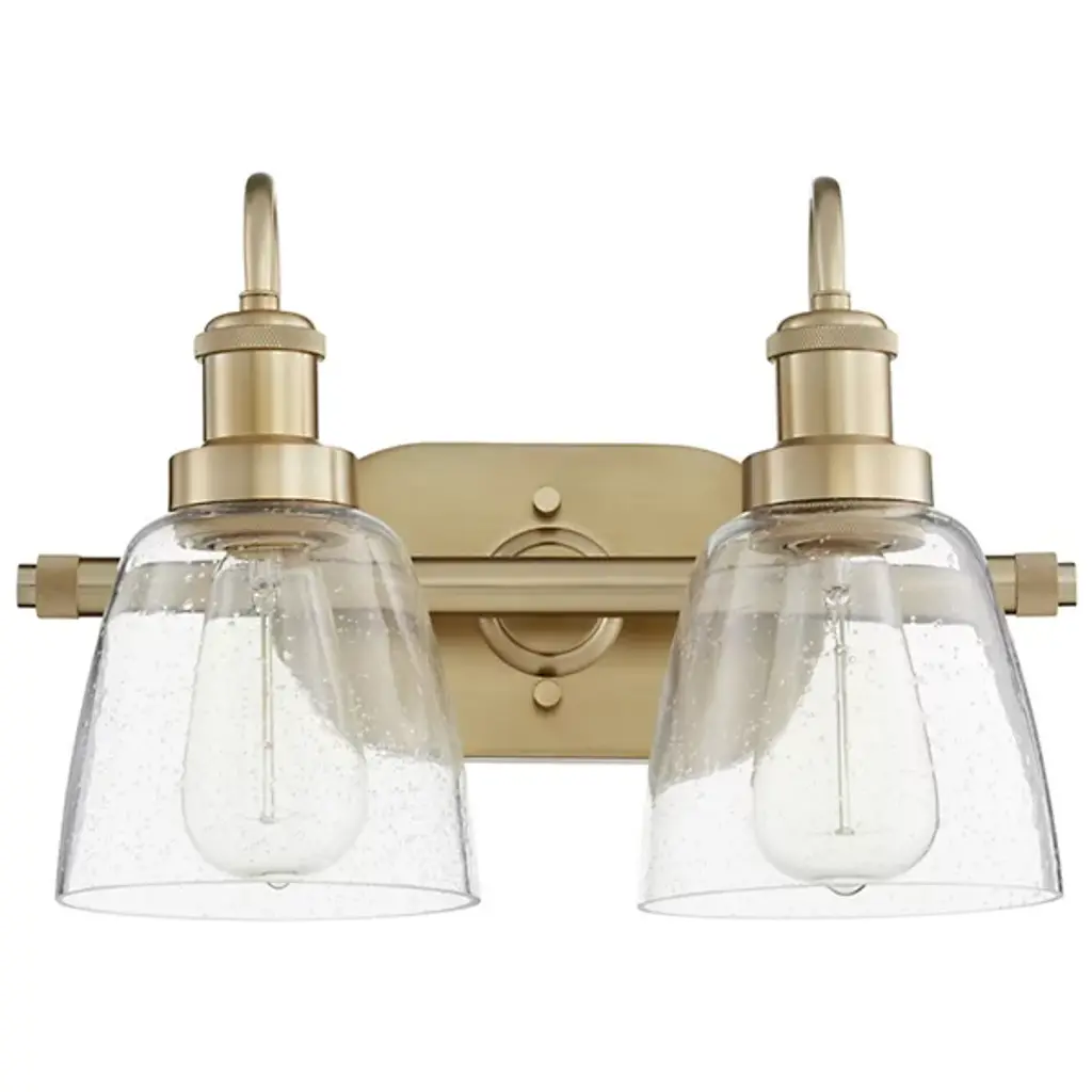 Reinvent your bathroom space with the industrial-inspired Juni 10 Vanity Light by Besa Lighting. Its sophisticated design contrasts a series of clean, handcrafted Bubbled Glass shades with a rugged, Aluminum wallplate and gooseneck socket holders. Lighting comes courtesy of internal filament bulbs that, once lit, radiate through the bubbles for a warm, yet glistening effect.