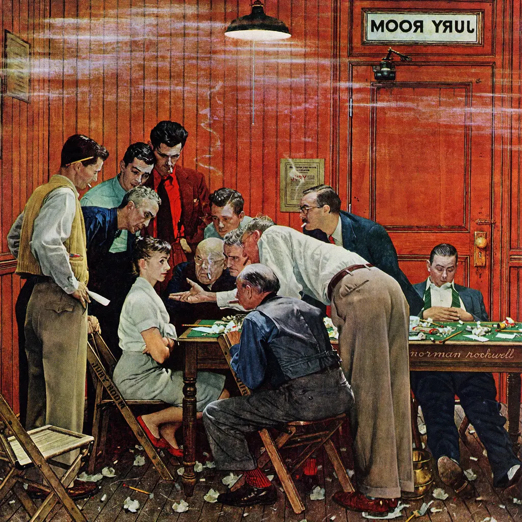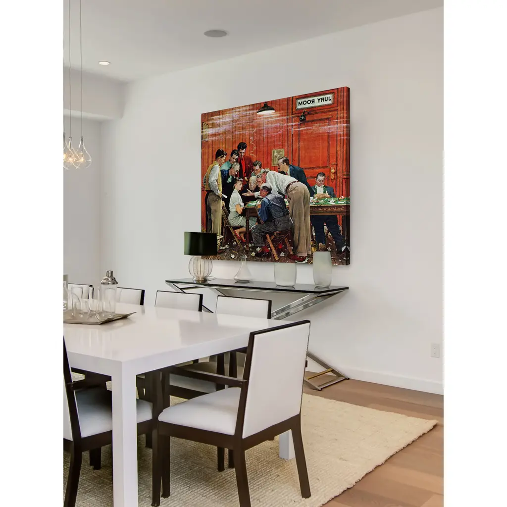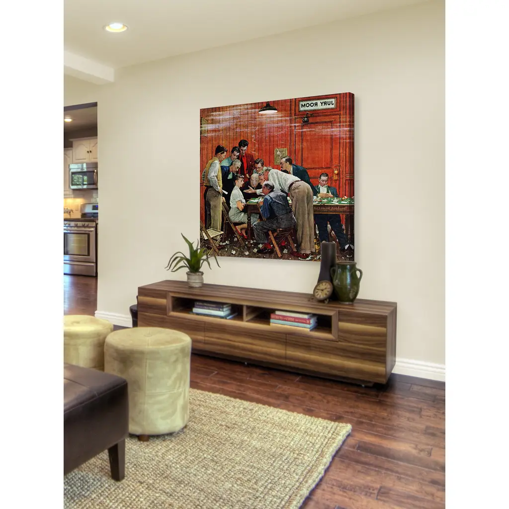 "Jury" Painting Print on Canvas by Norman Rockwell features vivid tones and supple artistry. Printed on canvas, this 32 inch wide by 32 inch tall piece will be an exceptional addition to any room.Fine art canvas print from the Marmont Hill Art CollectiveProfessionally hand stretchedGallery wrapped in sustainable, non-warping woodArrives ready to hangMade in the USAIncludes a certificate of authenticityNorman Rockwell was one of America's leading artists. He chose to tell the story of the American dream, the detail of a simpler time, painted with warmth and humor. He tapped into the nostalgia of the American people with paintings that were often idyllic and expressed enthusiasm for the ordinary.