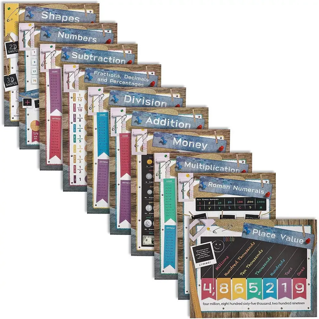 Juvale 10-count Kids Elementary School Math Learning Chart Posters, 10 Designs, 17.5 X 24 Inches