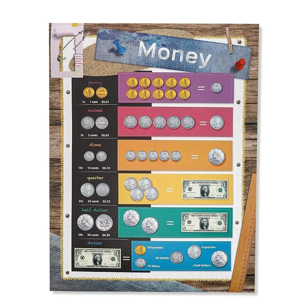 Are you looking for an effective way to brighten your classroom and enhance students' learning experiences? Our vibrant math poster set is designed to do just that. These engaging kids learning posters decorate your classroom and serve as valuable educational tools that make learning math fun and accessible. Many students need help grasping fundamental math concepts, which can lead to frustration and a lack of confidence in their abilities. Without the right visual aids, it can be challenging for teachers to keep students motivated and engaged, especially when dealing with complex topics like multiplication and division. Traditional teaching methods often fail to provide the interactive and visually stimulating environment needed to help students excel. Classrooms can feel dull and uninspiring, making it difficult for students to stay focused and retain valuable information. Teachers need reliable resources to create a dynamic and positive learning atmosphere. Transform your classroom with our elementary math posters. This set includes a variety of educational posters for kids, featuring a multiplication chart poster, a division chart, and other essential math charts for kids. Each math classroom decoration is designed to be informative and visually appealing, making it easier for students to understand and remember key math concepts. Each poster measures 17.5 x 24 inches, an ideal size that ensures visibility from any point in the room while fitting neatly on various wall spaces. What's included in this pack? You get 10 diverse math charts for kids: place value chart, money counting, addition chart, division chart, multiplication chart and more. These kids learning posters are essential for introducing new math topics, reviewing skills, and creating a stimulating educational environment.